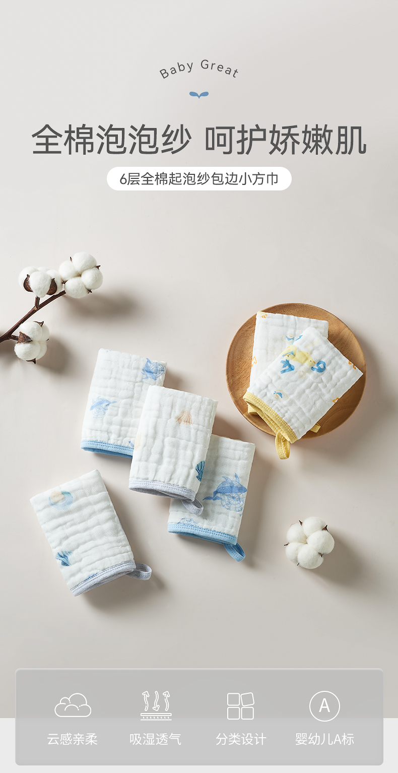 【BG】BabyGreat婴幼儿洗脸小方巾口水巾洗屁屁方巾