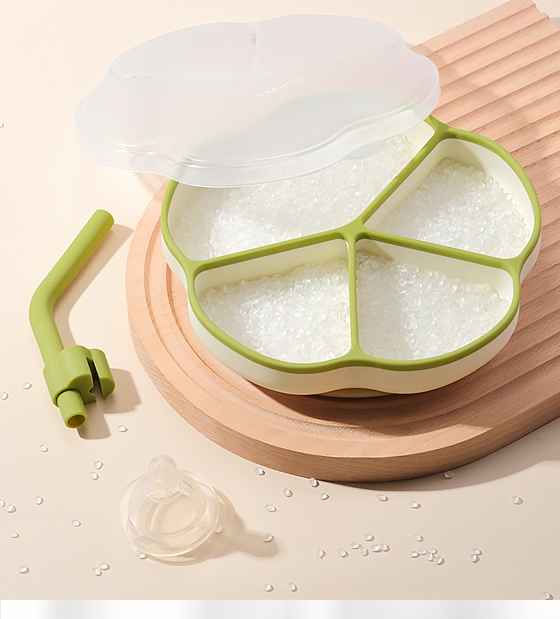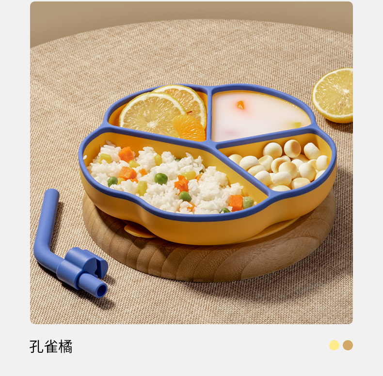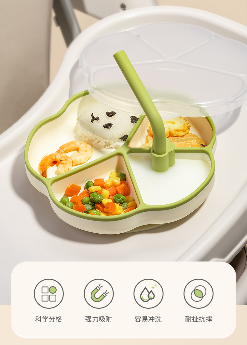 英氏(YEEHOO) 宝宝硅胶分格餐盘餐具婴幼儿防摔吸盘一体式吃饭辅食碗 +吸管C48B