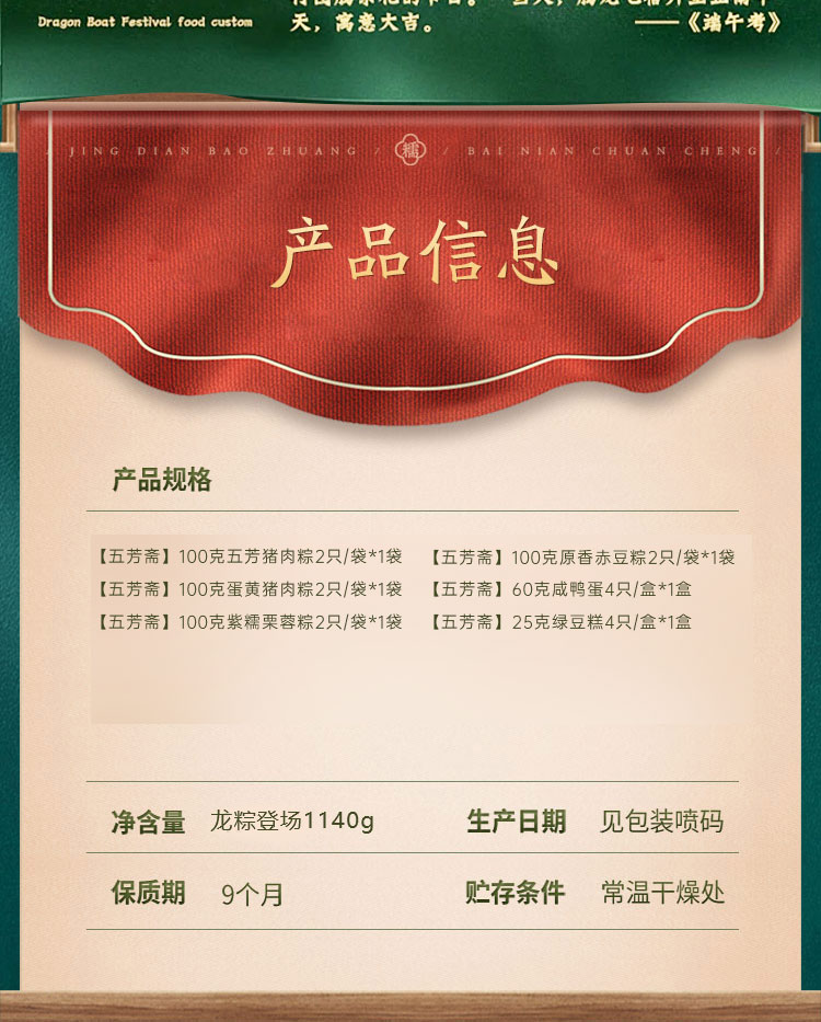五芳斋-龙粽登场(8 粽+4 蛋+糕点)1140g【端午】LP