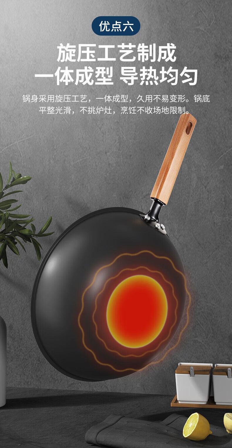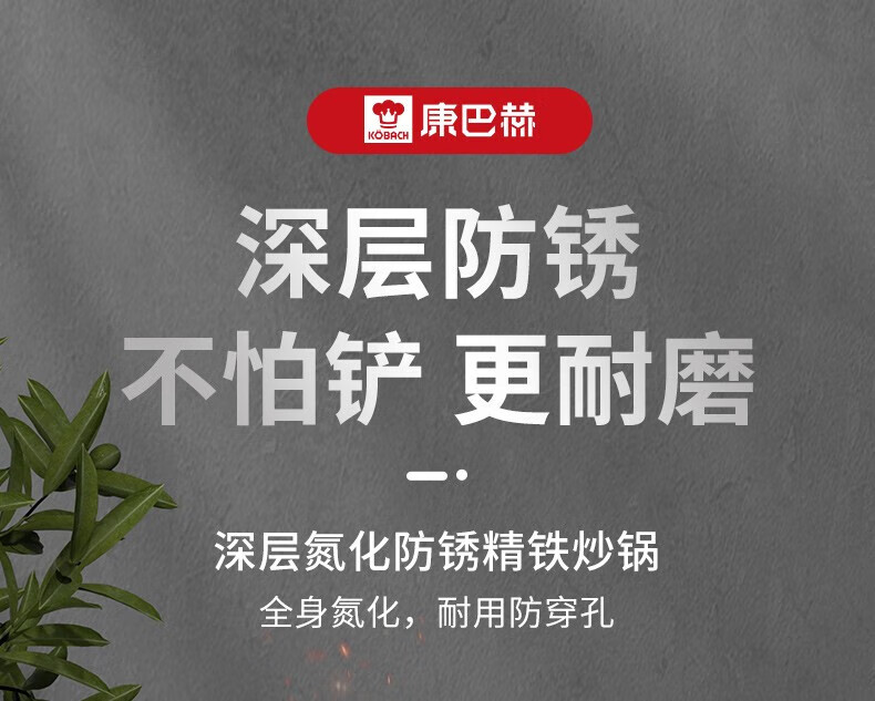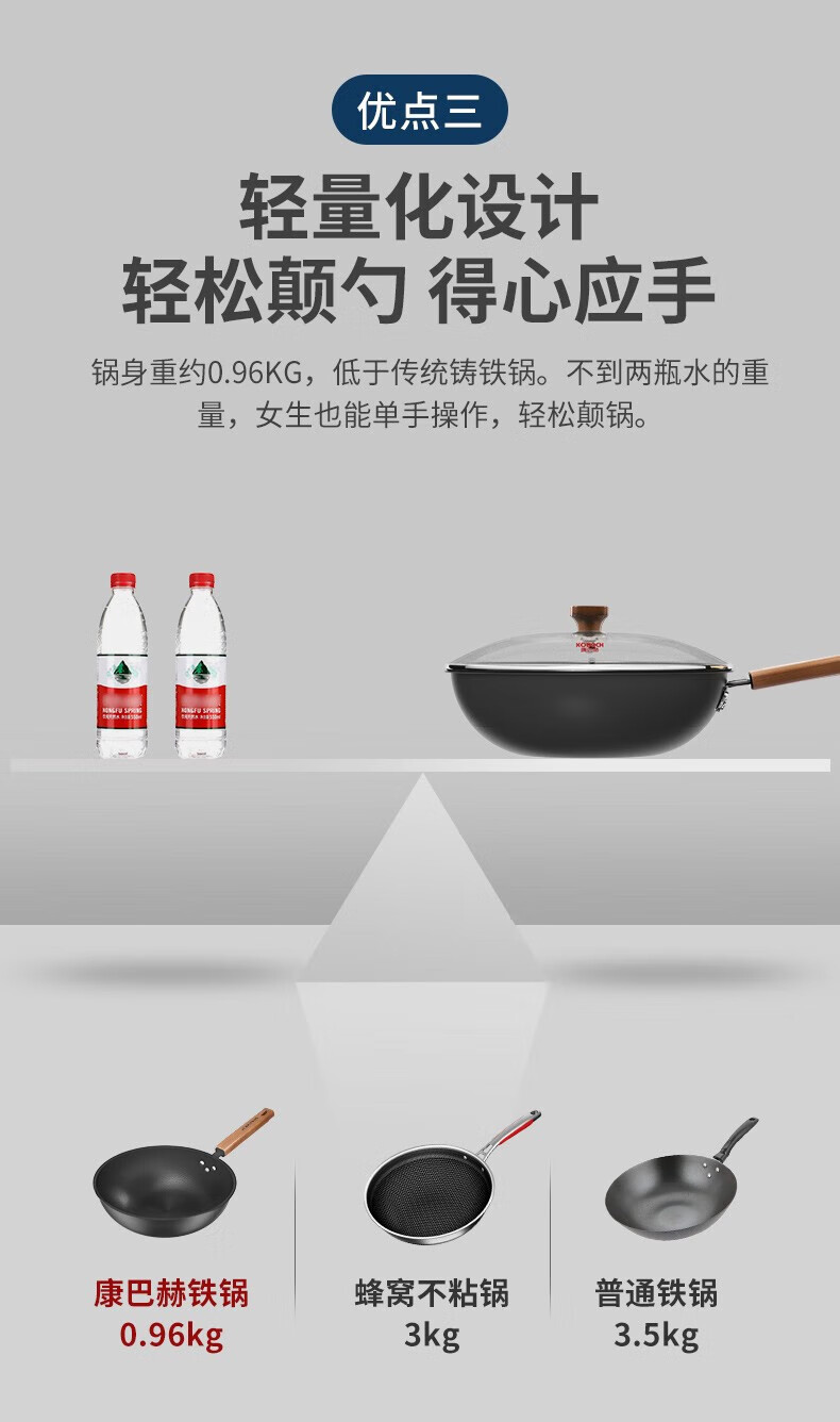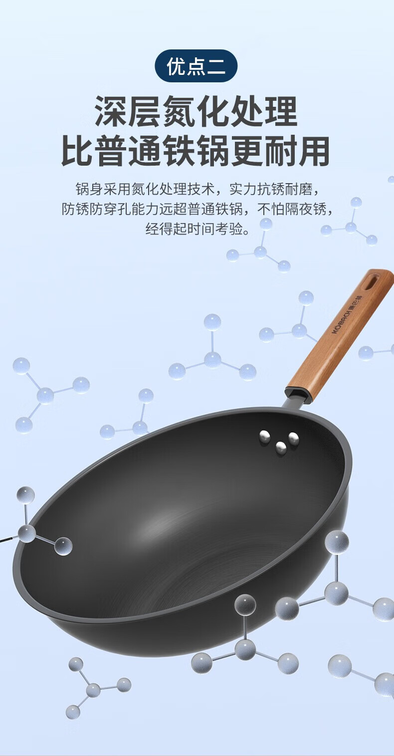 【小家电】康巴赫(KBH)炒锅 无涂层深氮防锈精铁锅平底炒菜锅电磁炉明火通用深氮防锈铁锅32cm KGS-C32BHF