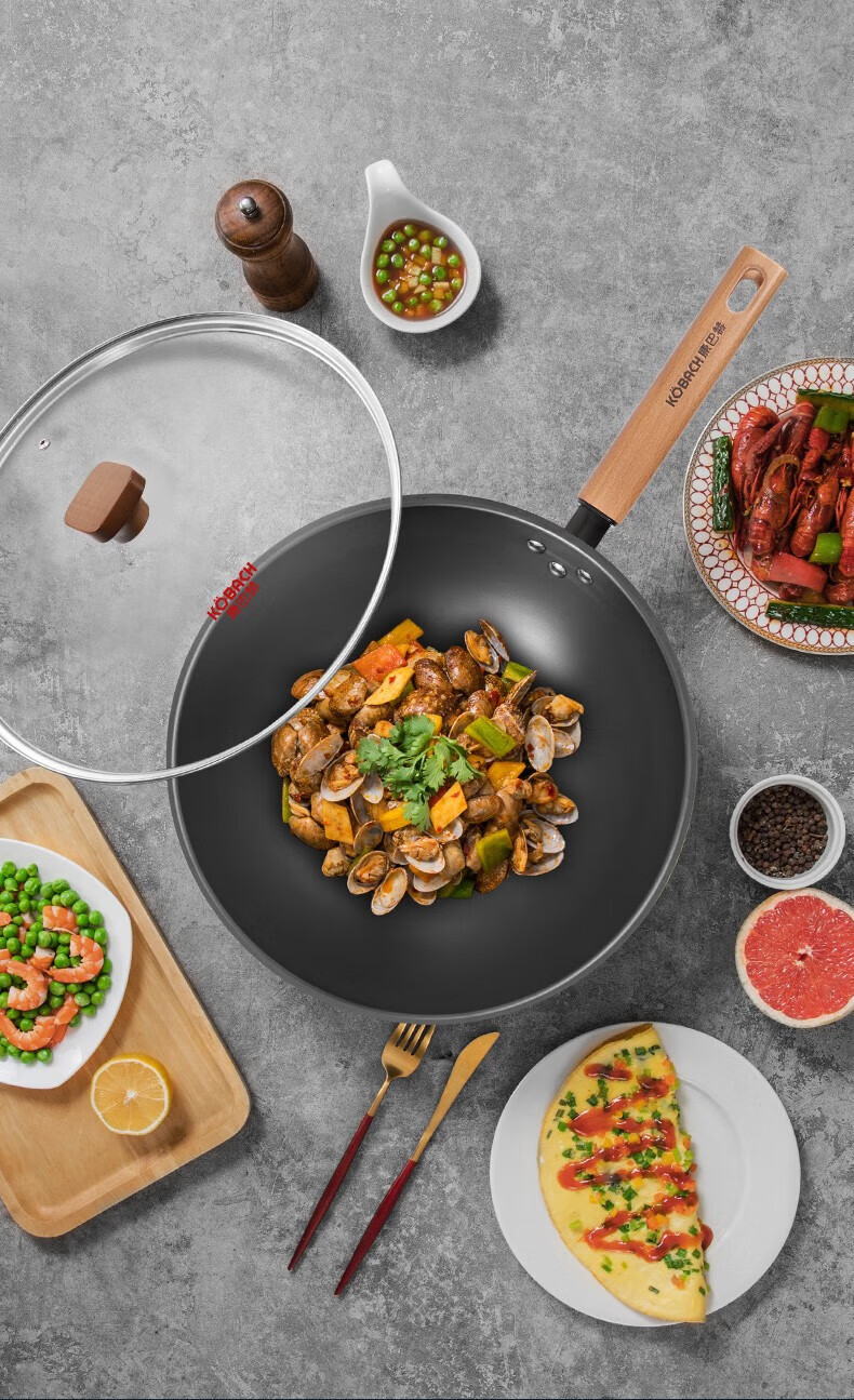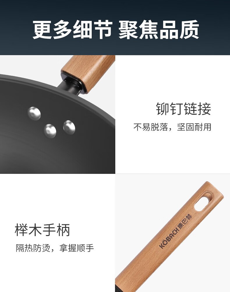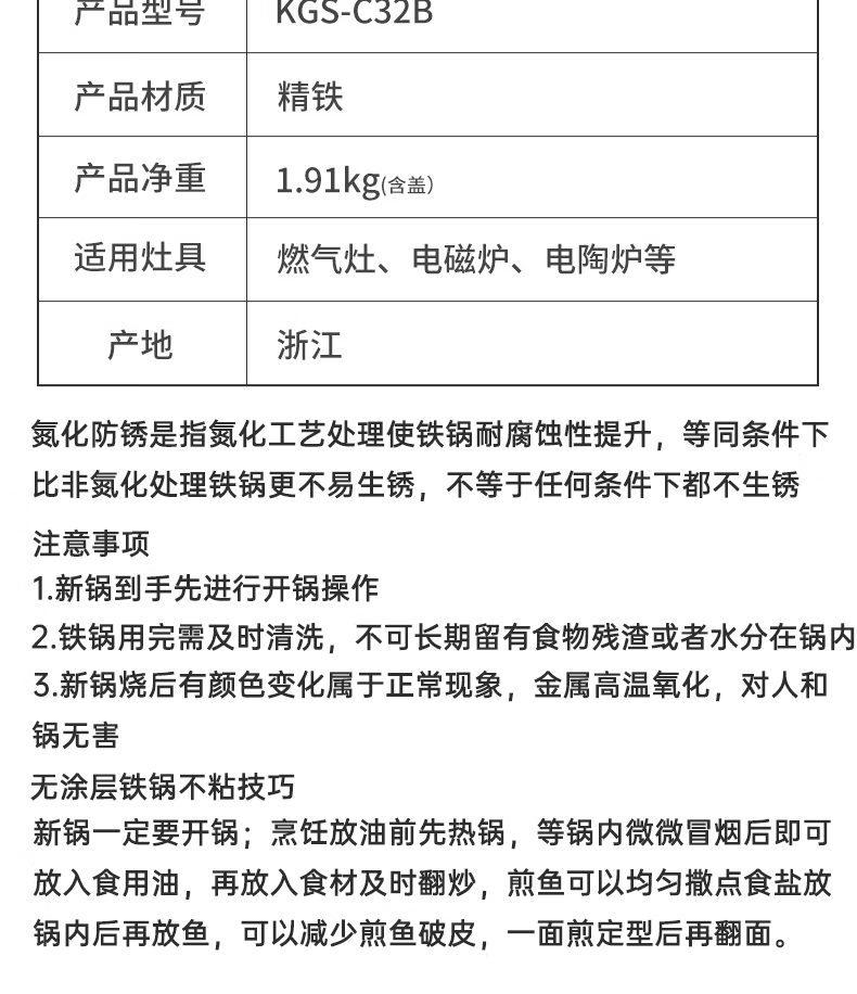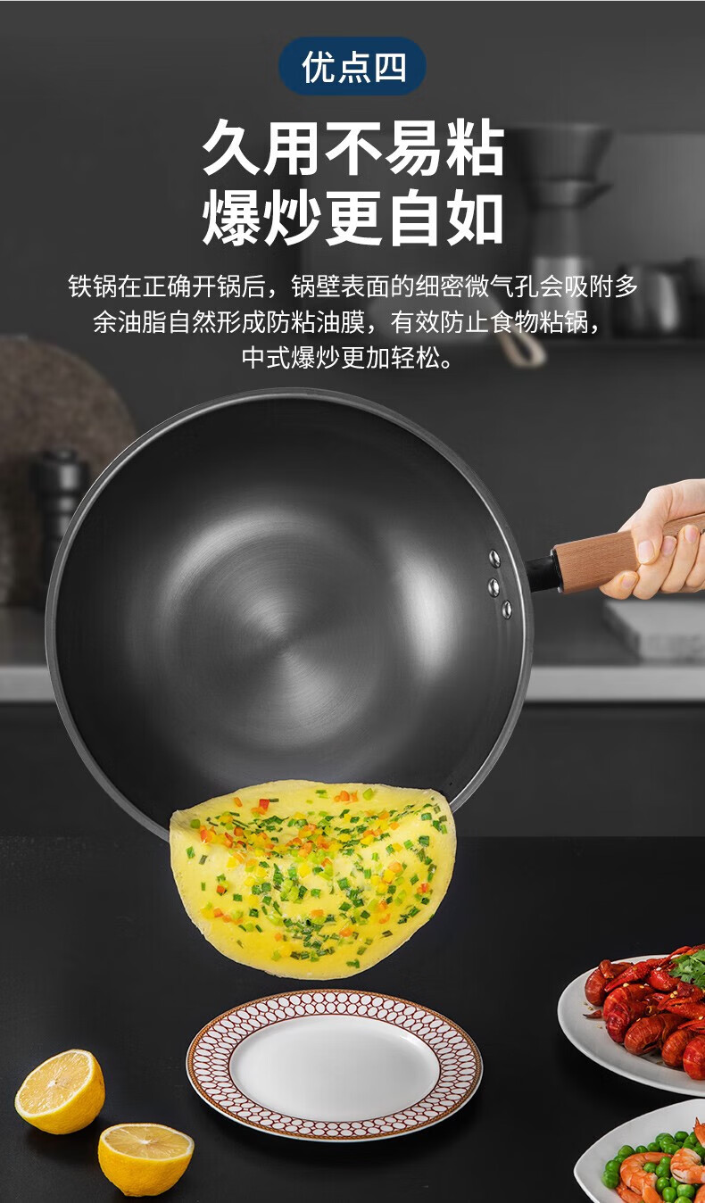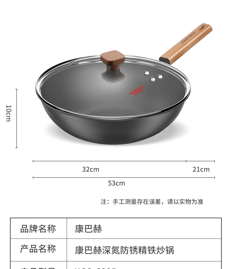 【小家电】康巴赫(KBH)炒锅 无涂层深氮防锈精铁锅平底炒菜锅电磁炉明火通用深氮防锈铁锅32cm KGS-C32BHF