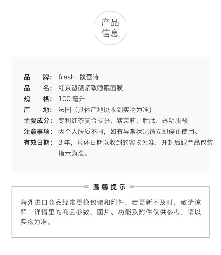 Fresh 馥蕾诗 红茶(黑茶)塑颜紧致修护睡眠面膜 100ml - 夜间补水 紧致提拉 滋养修护