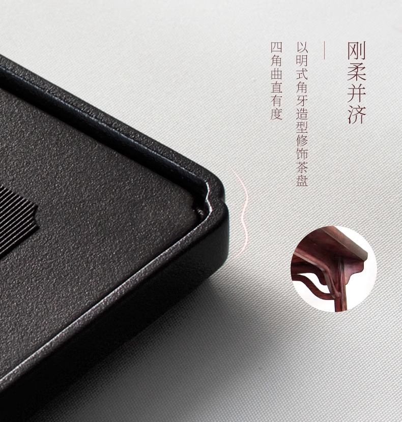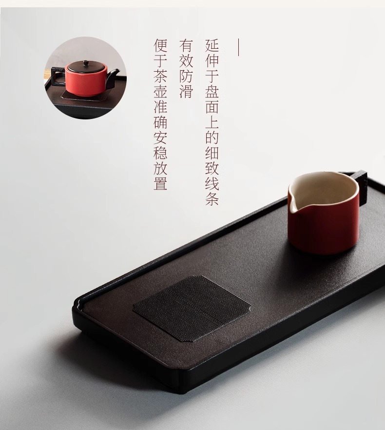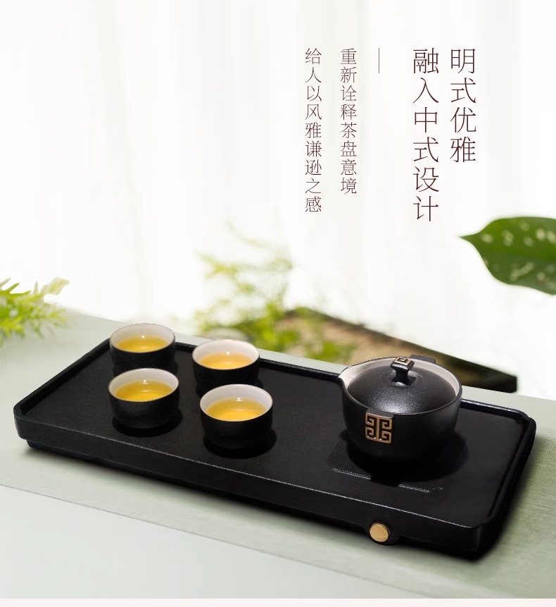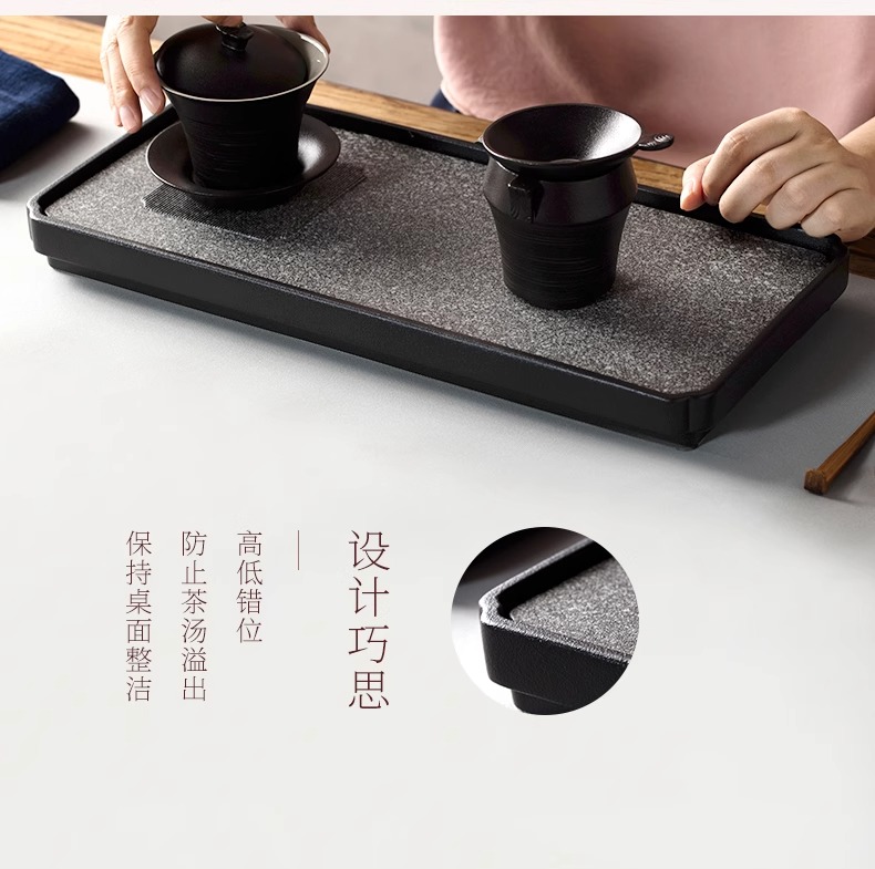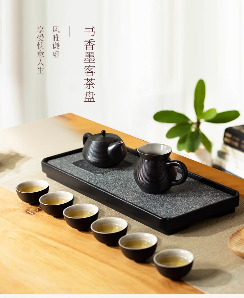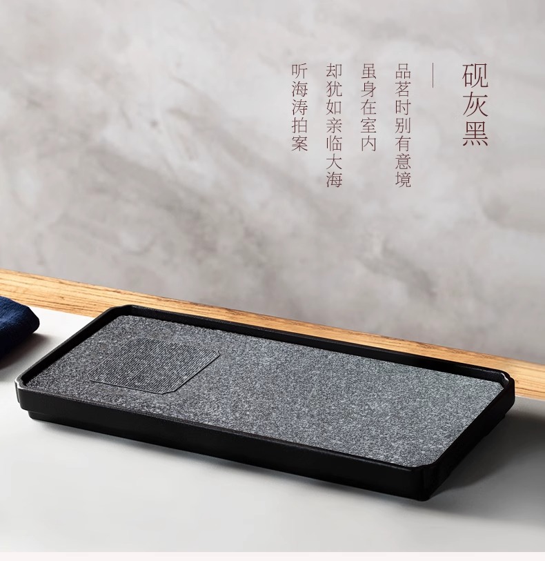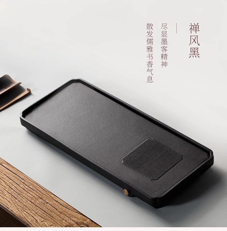 台湾陆宝陶瓷书香墨客茶盘储水浅盘配排水管茶席陶瓷家用方形茶盘陆宝书香墨客茶盘45*23.8*9cm 砚灰黑