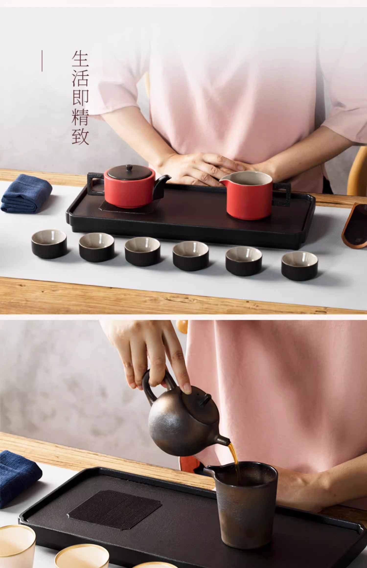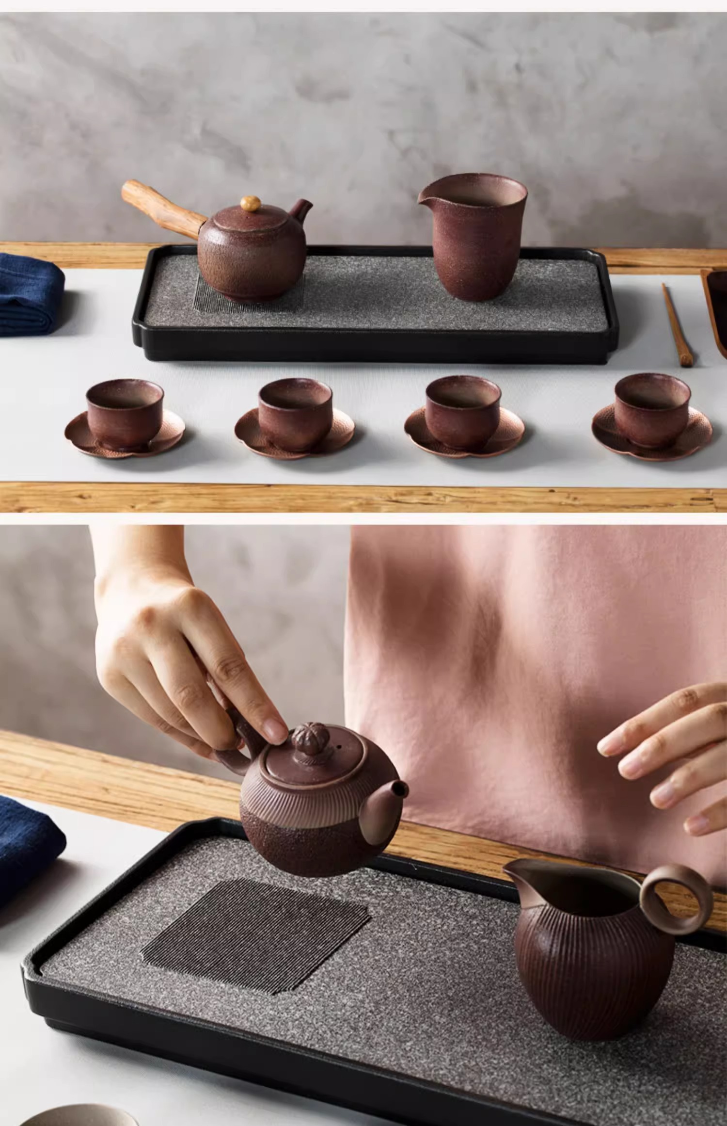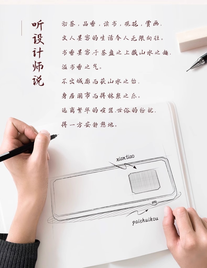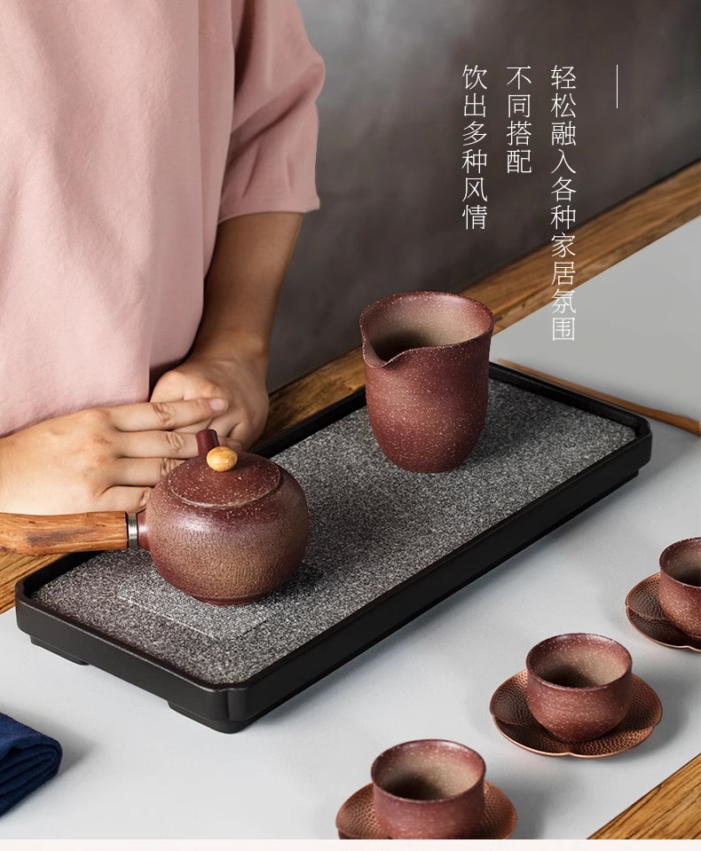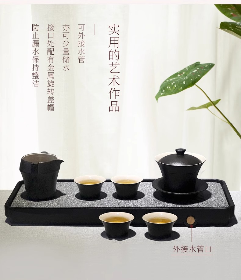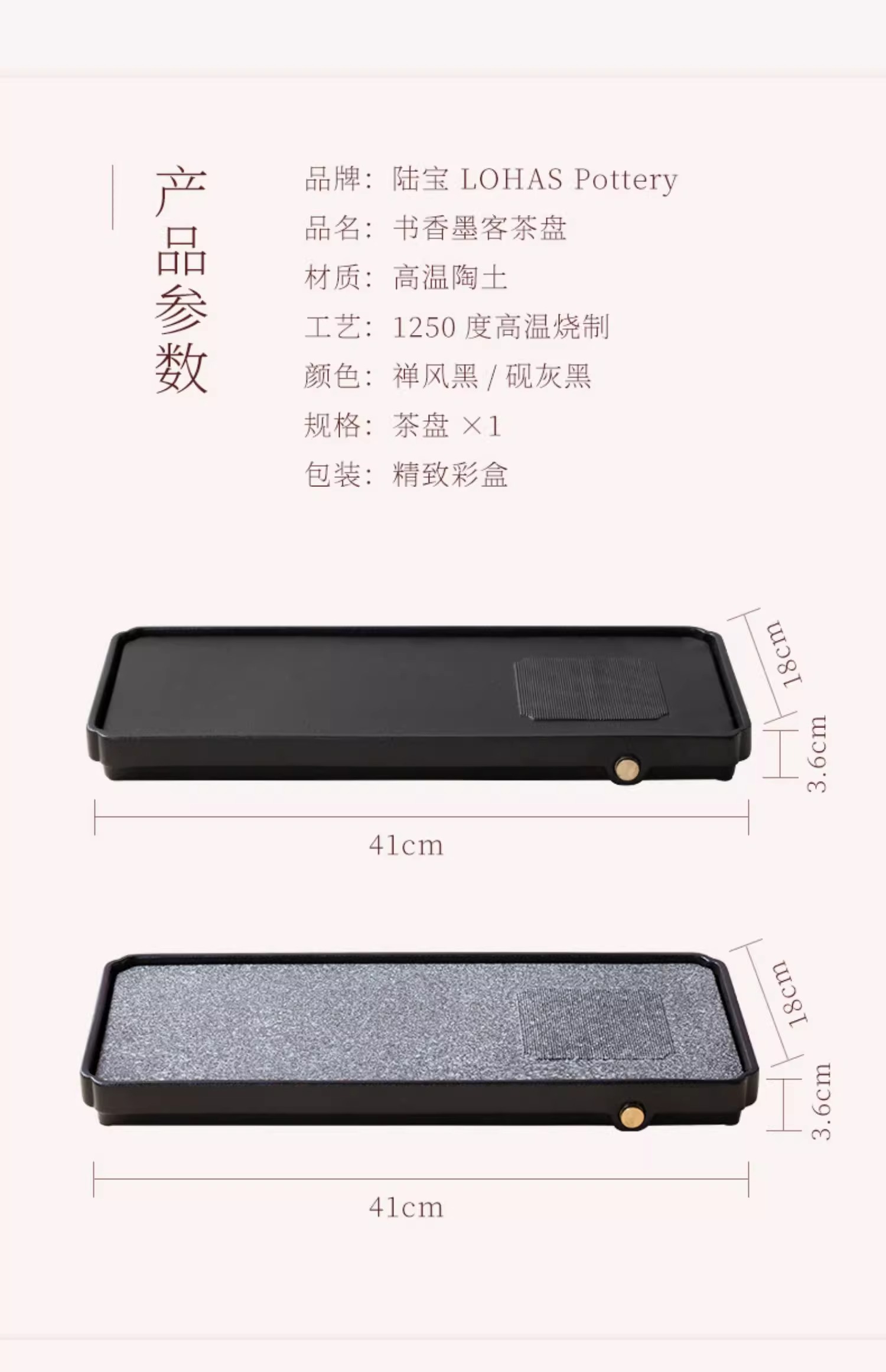 台湾陆宝陶瓷书香墨客茶盘储水浅盘配排水管茶席陶瓷家用方形茶盘陆宝书香墨客茶盘45*23.8*9cm 砚灰黑