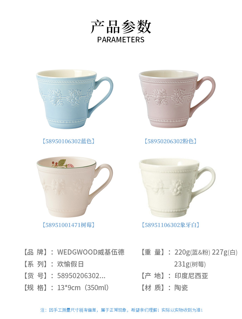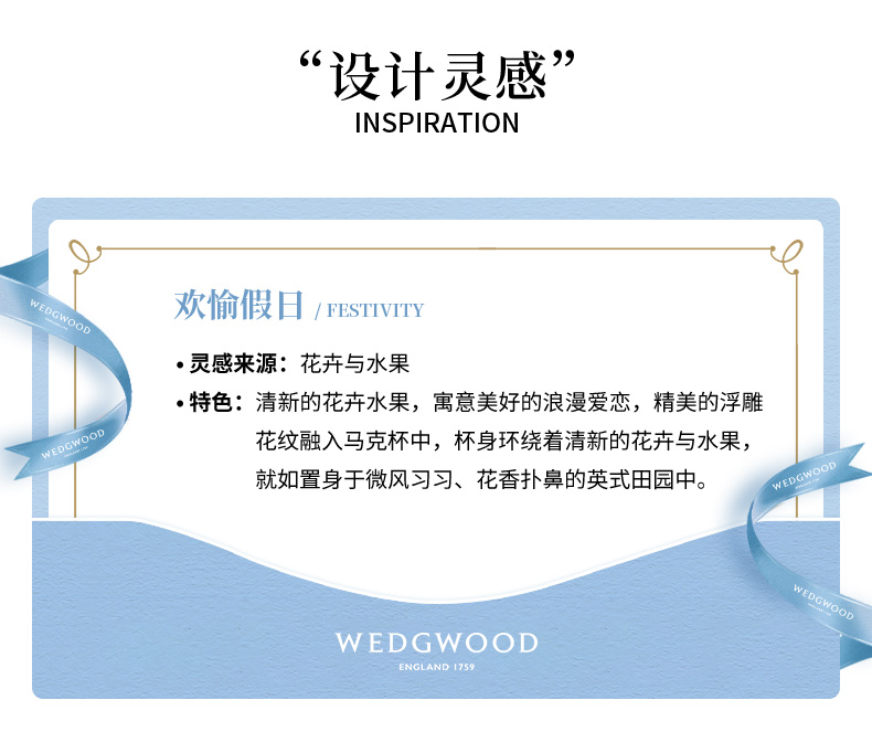 WEDGWOOD威基伍德欢愉假日陶瓷马克杯水杯子茶杯咖啡杯新婚礼物