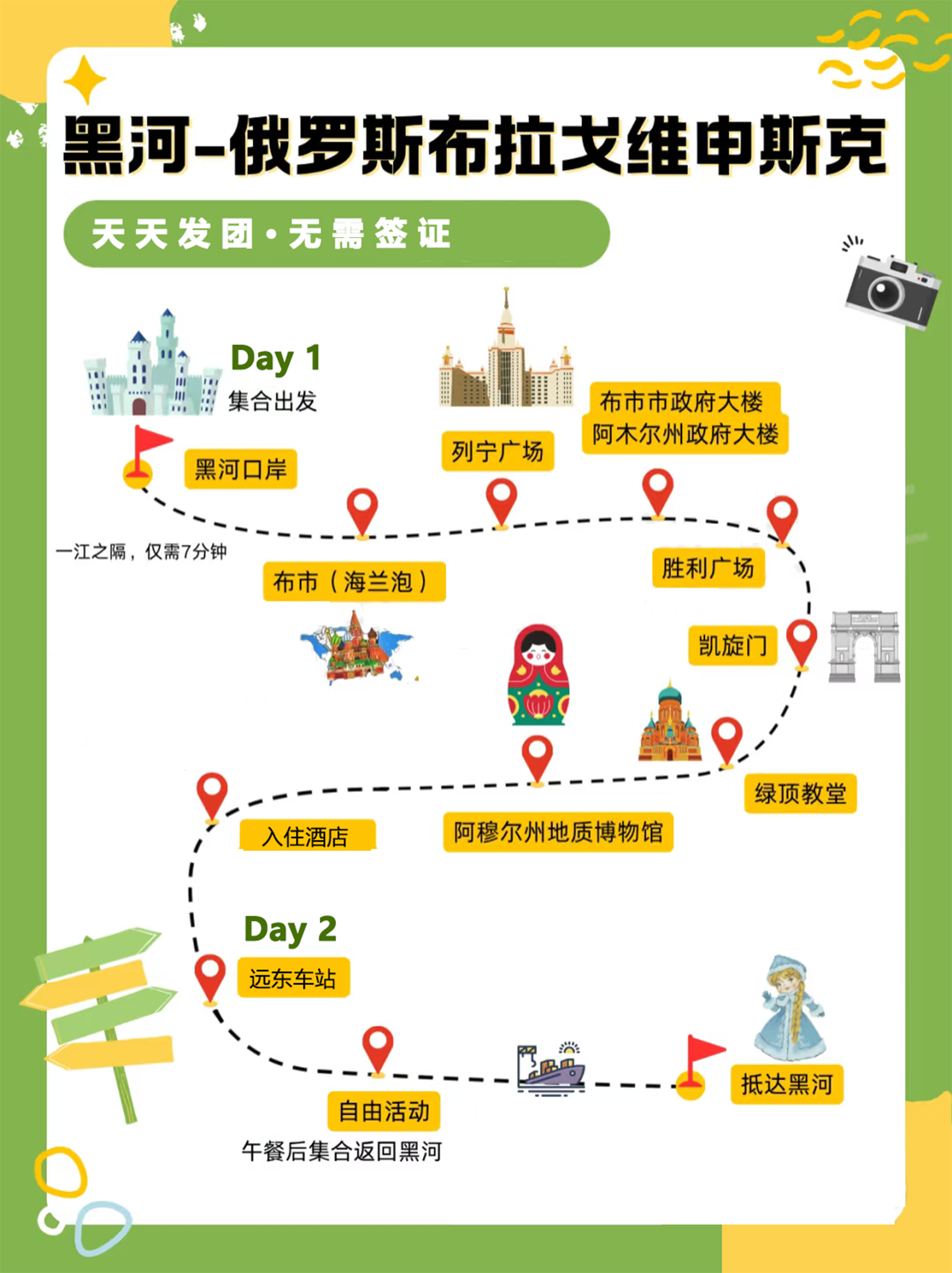 【无需签证,出国俄罗斯】黑河-俄罗斯布拉戈维申斯克 | 【2日游·黑河起止】 / 【3日游·五大连池起止】