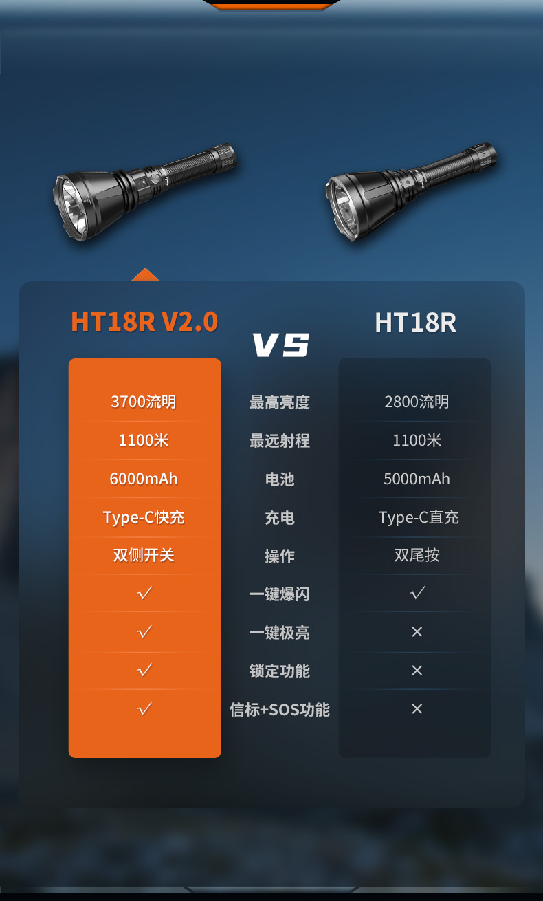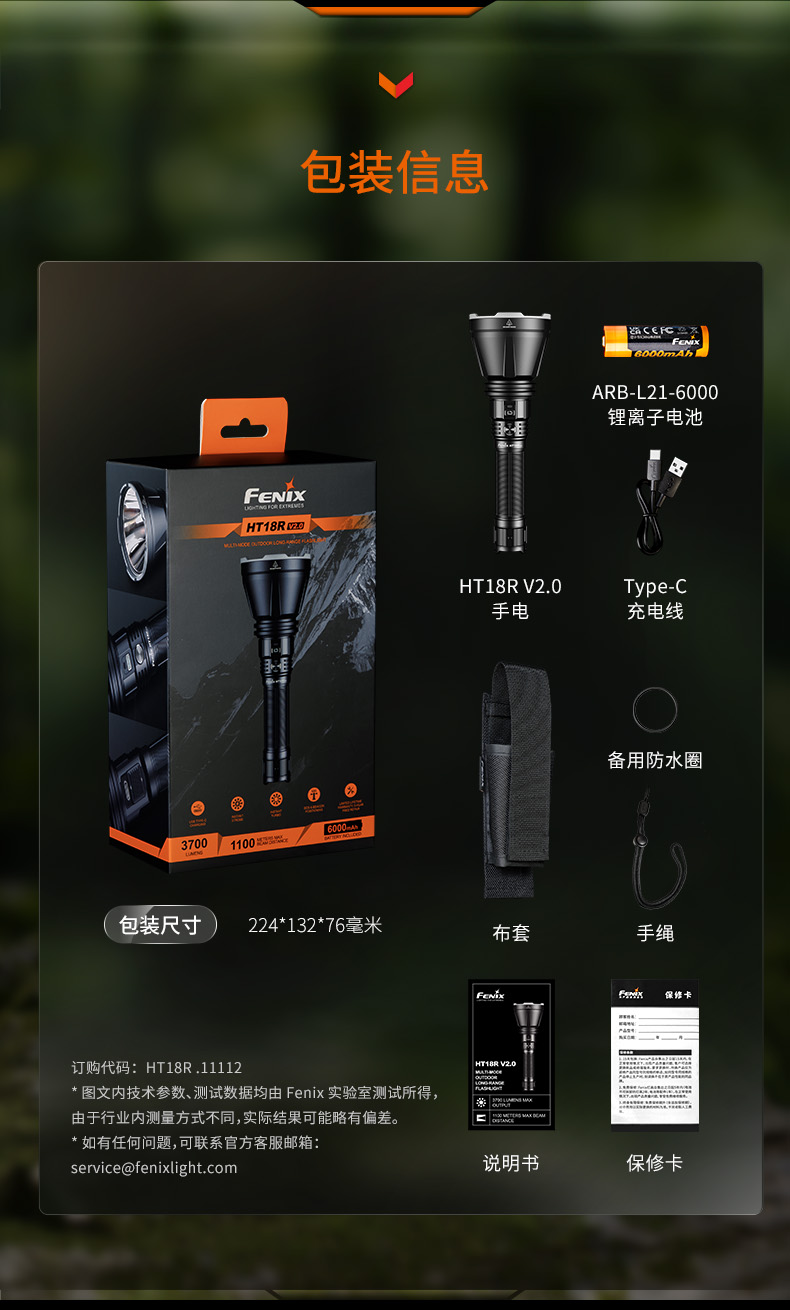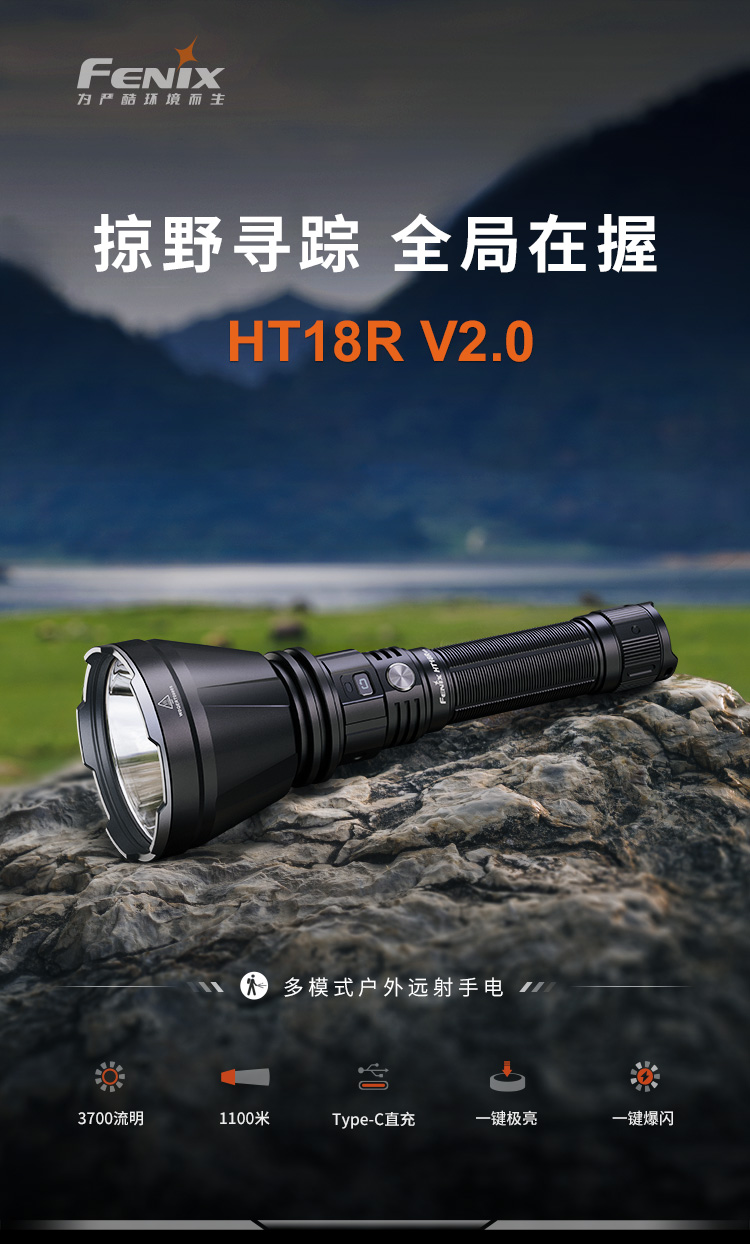 Fenix HT18R V2.0强光远射1100米手电筒21700电池亮度防水户外探洞手电