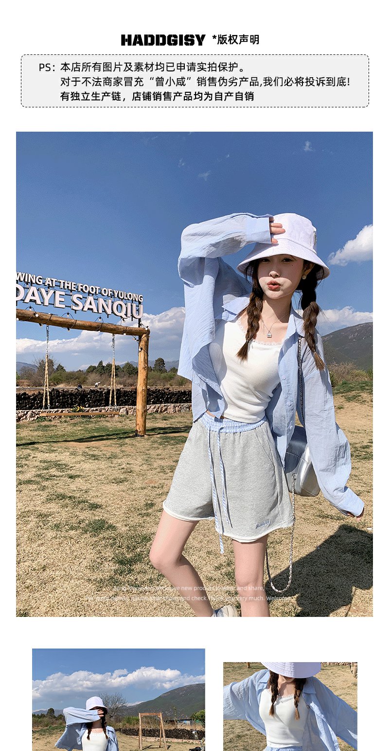 <曾小咸推荐>设计感灰色撞蓝格腰头短裤休闲裤