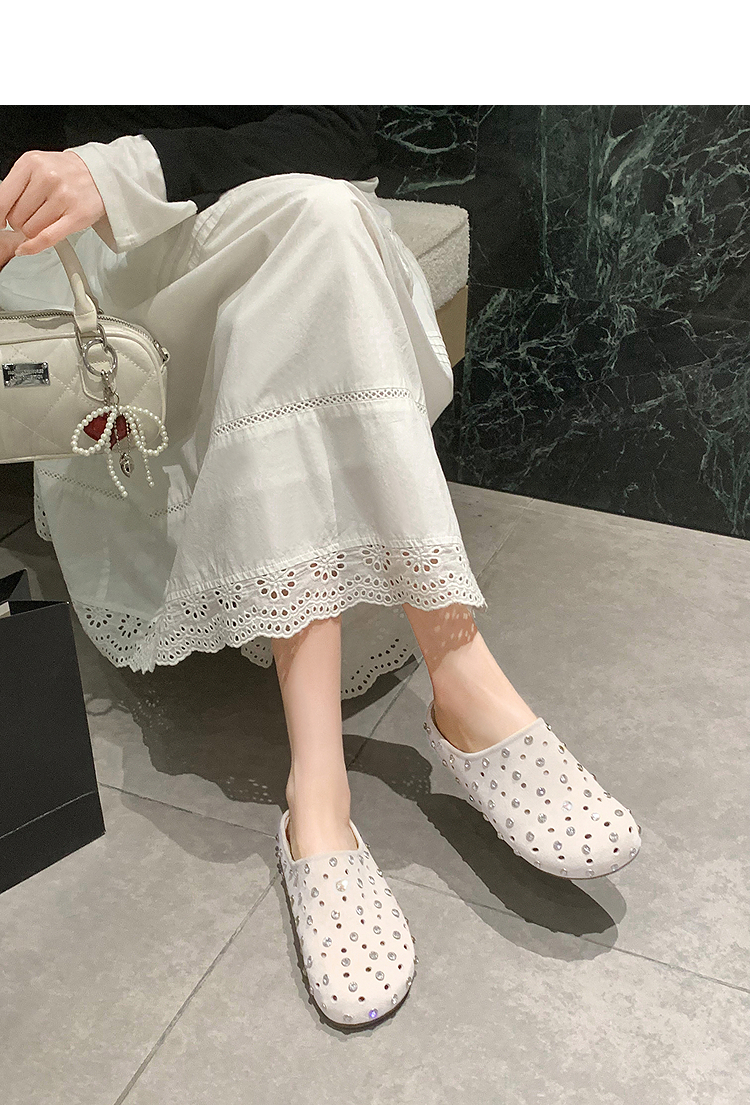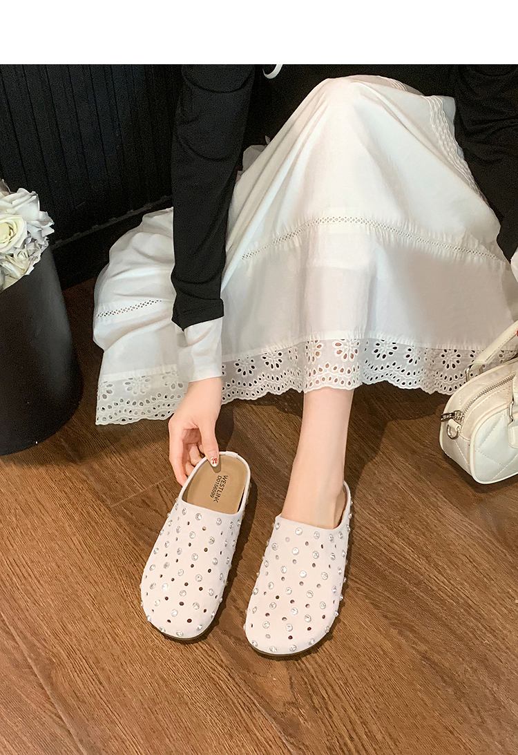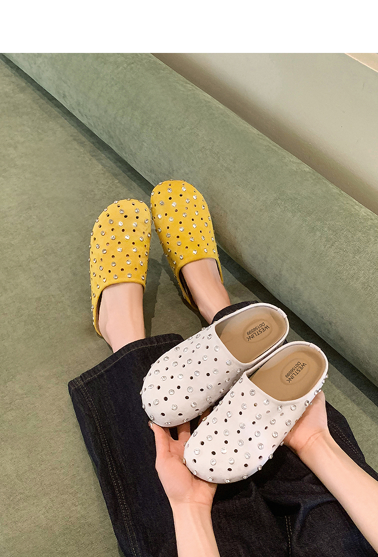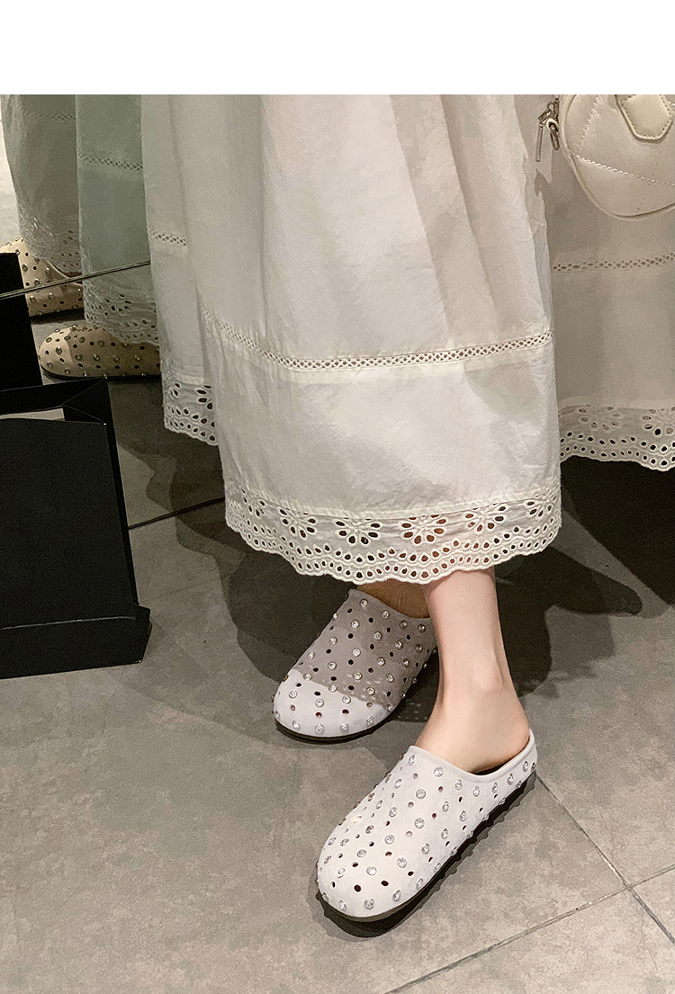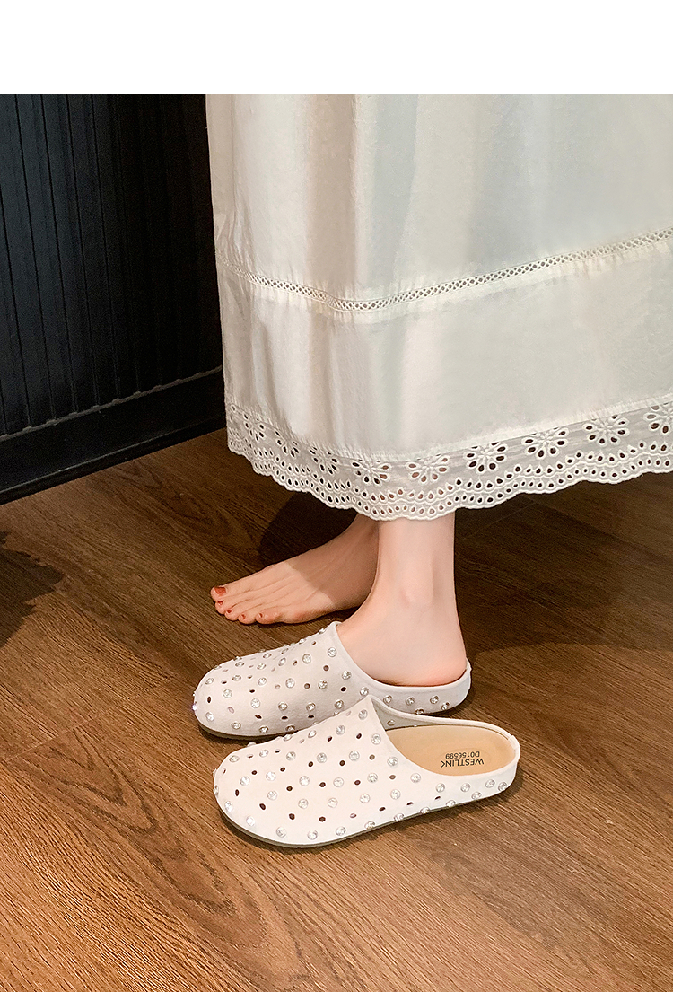 【限时秒杀】西遇包头半拖鞋女2026春夏季新款水钻镂空透气一脚蹬勃肯鞋凉拖鞋V0066321