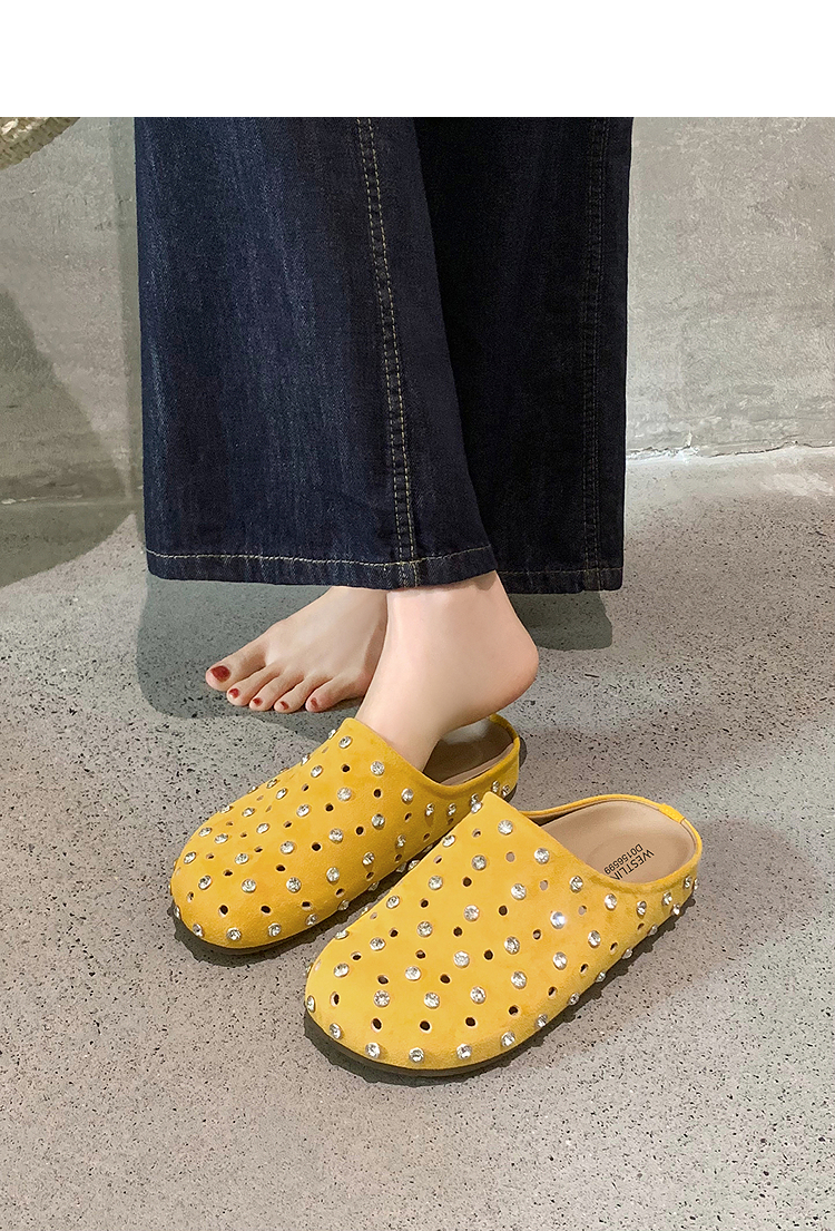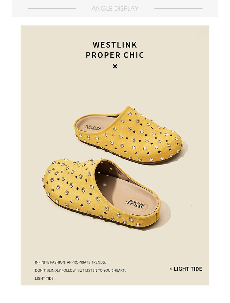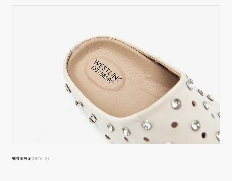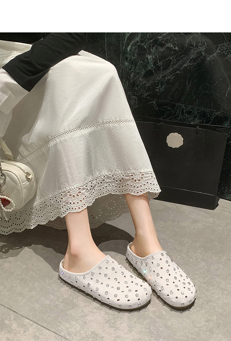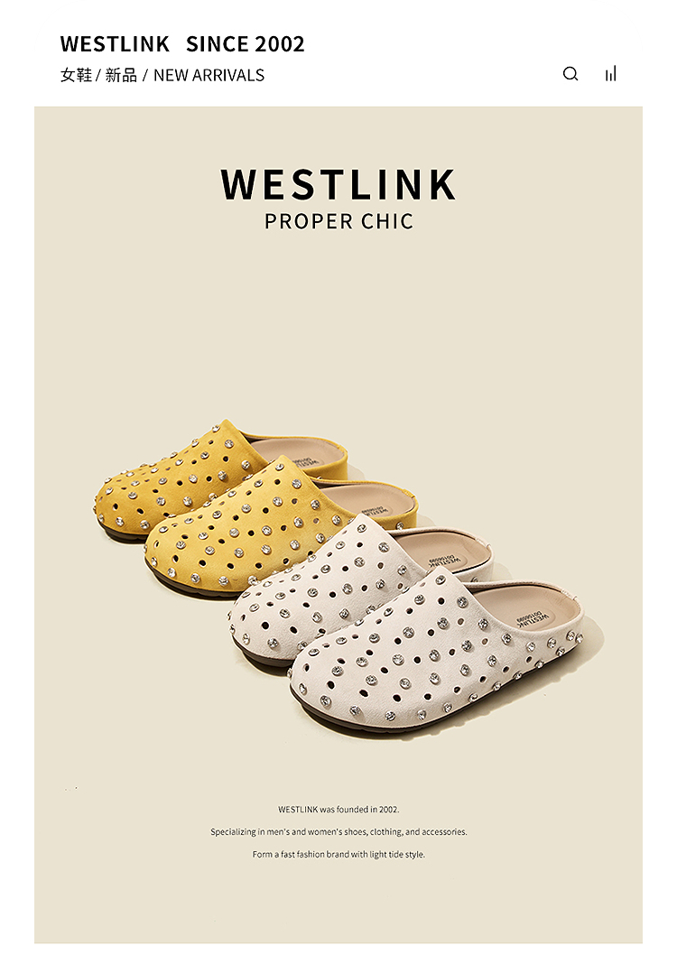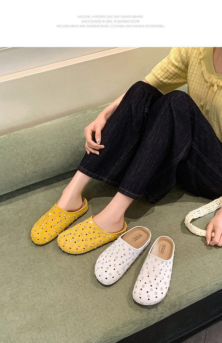 【限时秒杀】西遇包头半拖鞋女2026春夏季新款水钻镂空透气一脚蹬勃肯鞋凉拖鞋V0066321