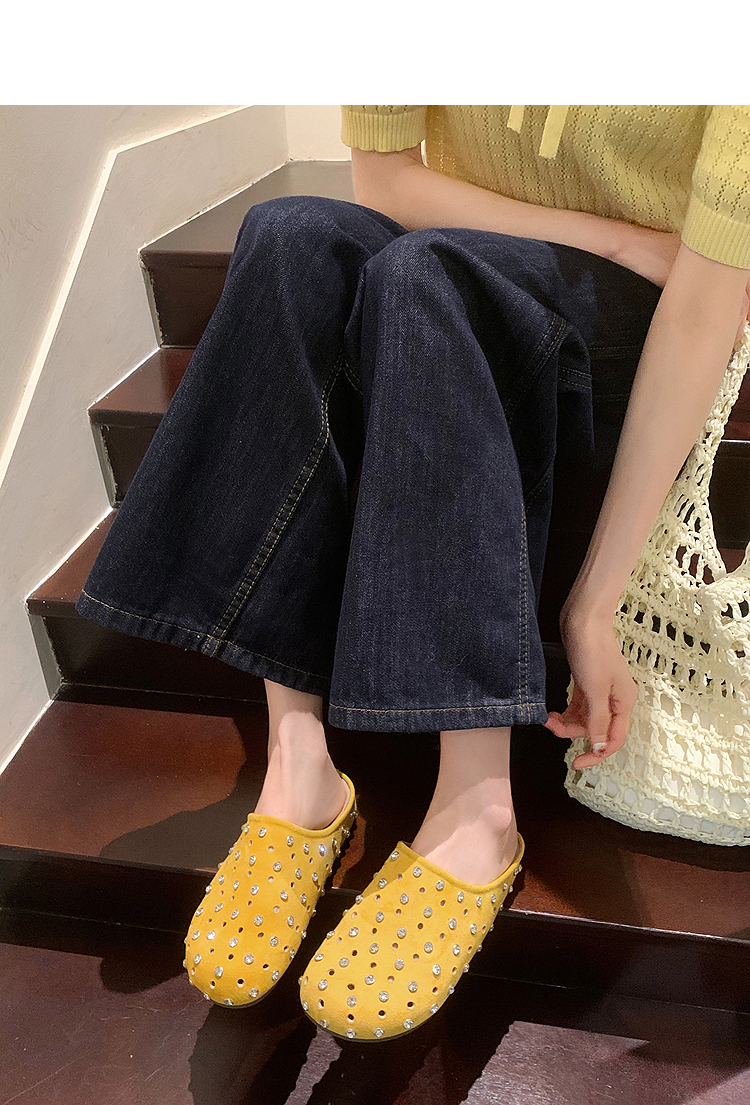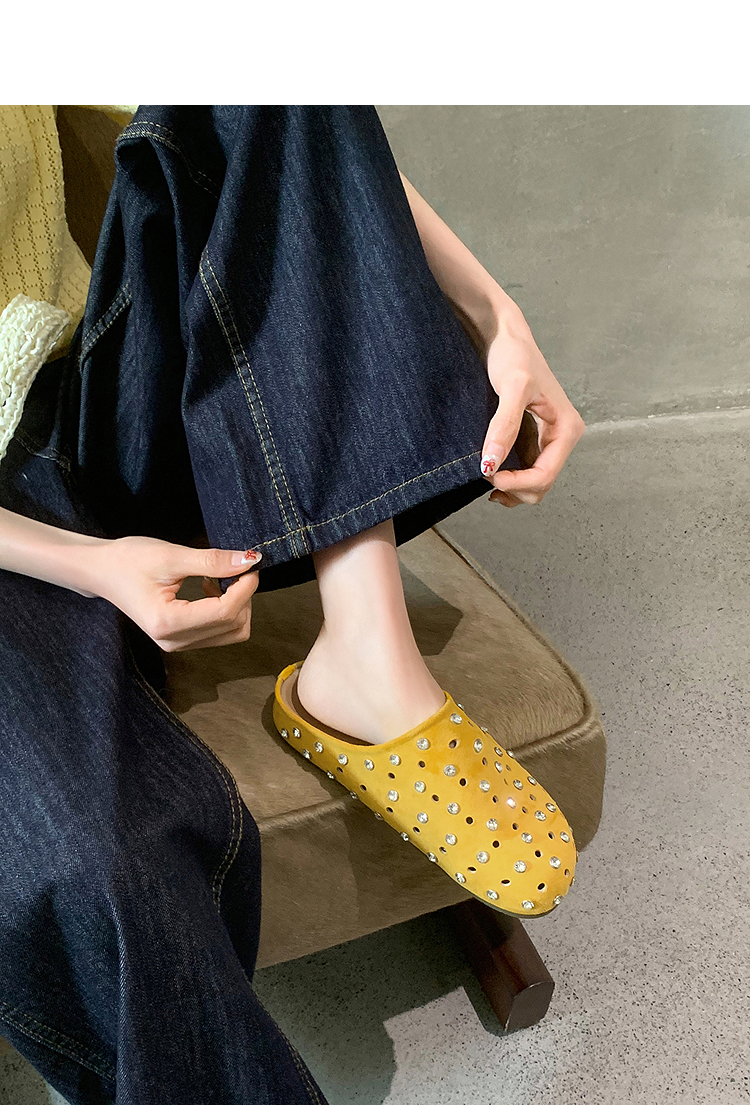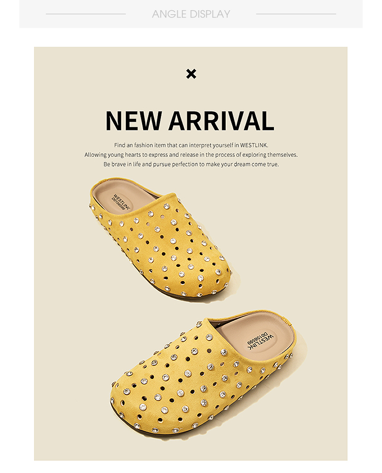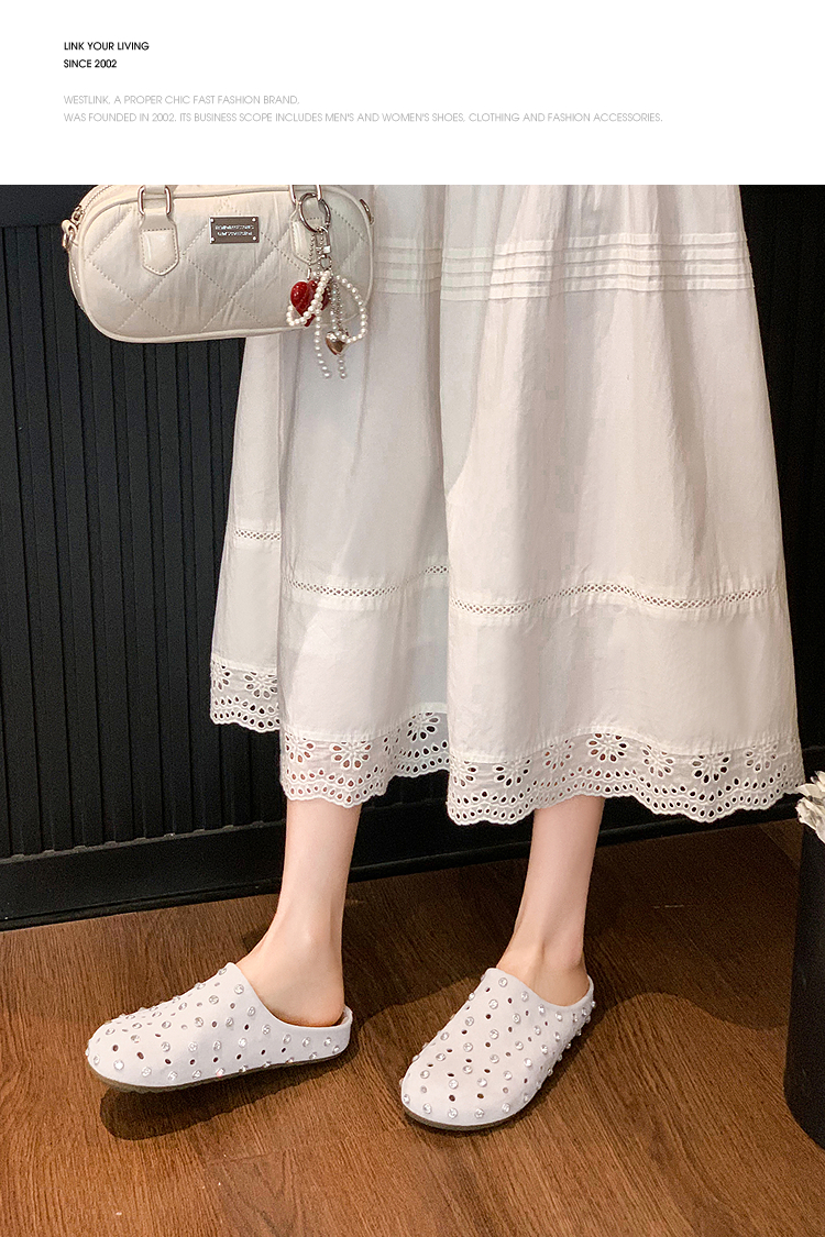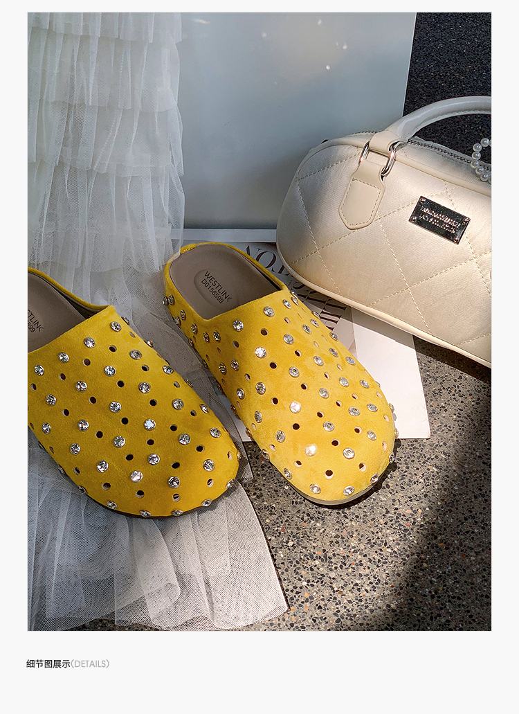 【限时秒杀】西遇包头半拖鞋女2026春夏季新款水钻镂空透气一脚蹬勃肯鞋凉拖鞋V0066321