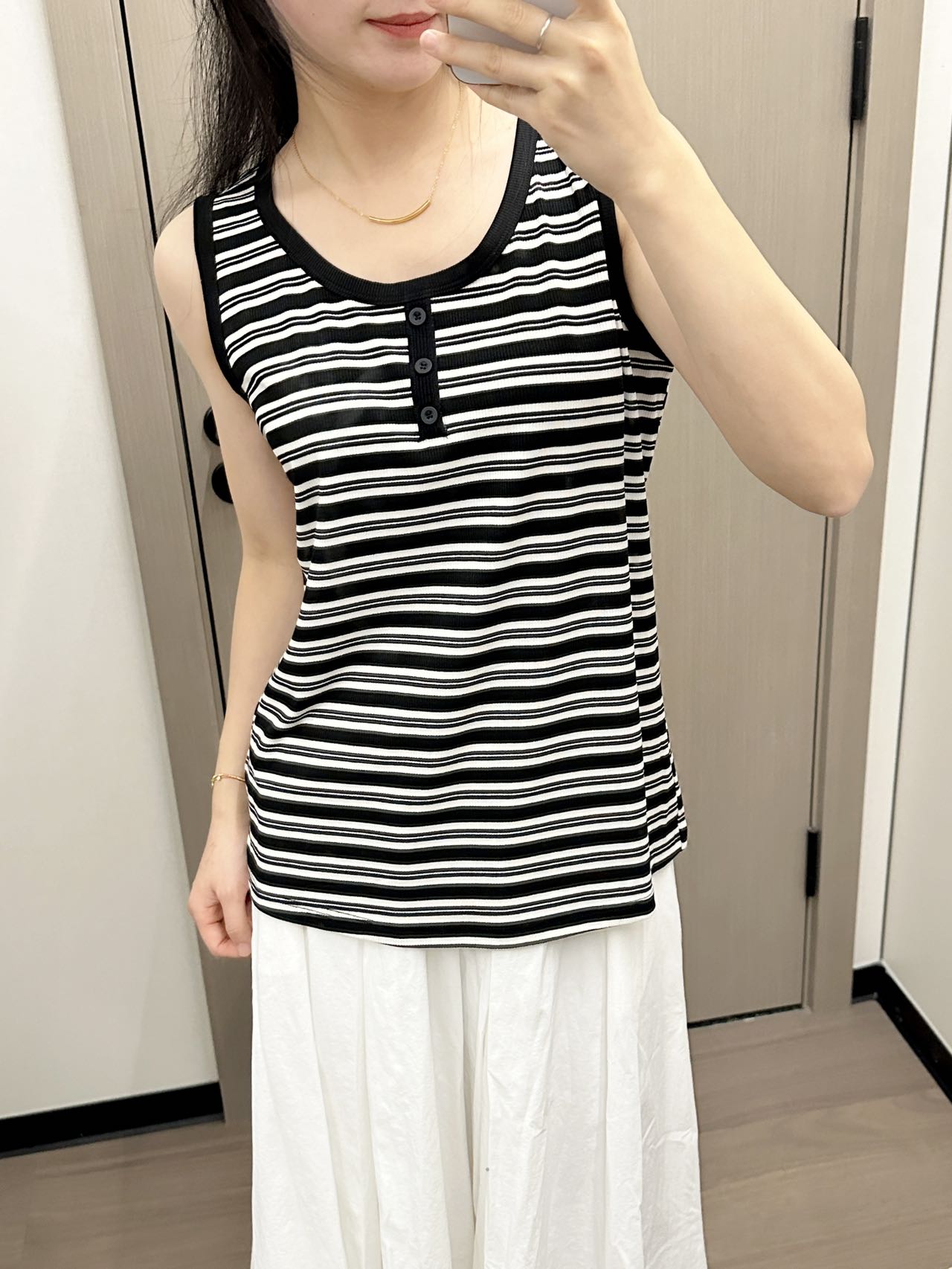 【99元2件】女士条纹大码背心宽松宽肩带背心【FF25506】
