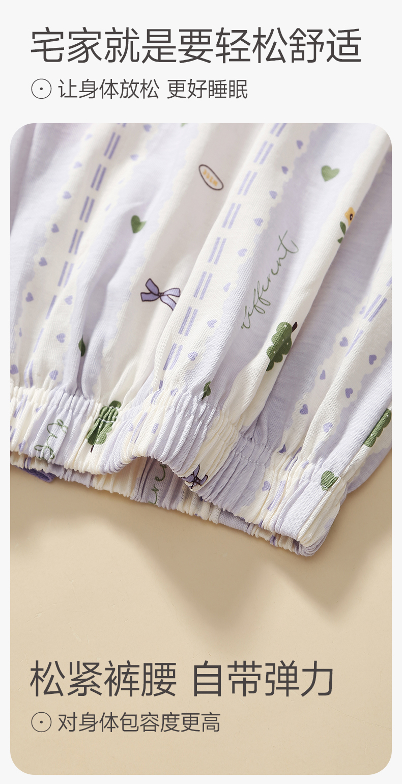 芬腾女士睡裤夏季纯棉薄款透气长裤女款休闲加大码全棉家居裤单裤