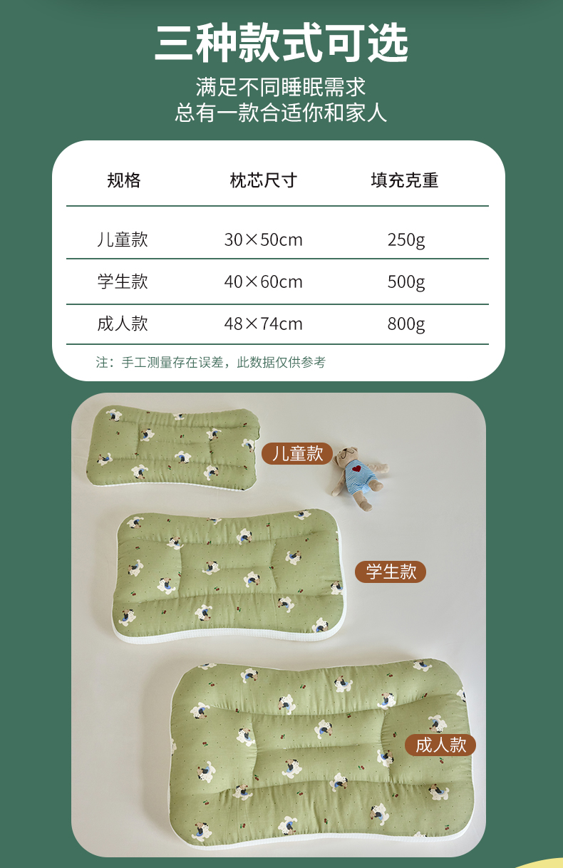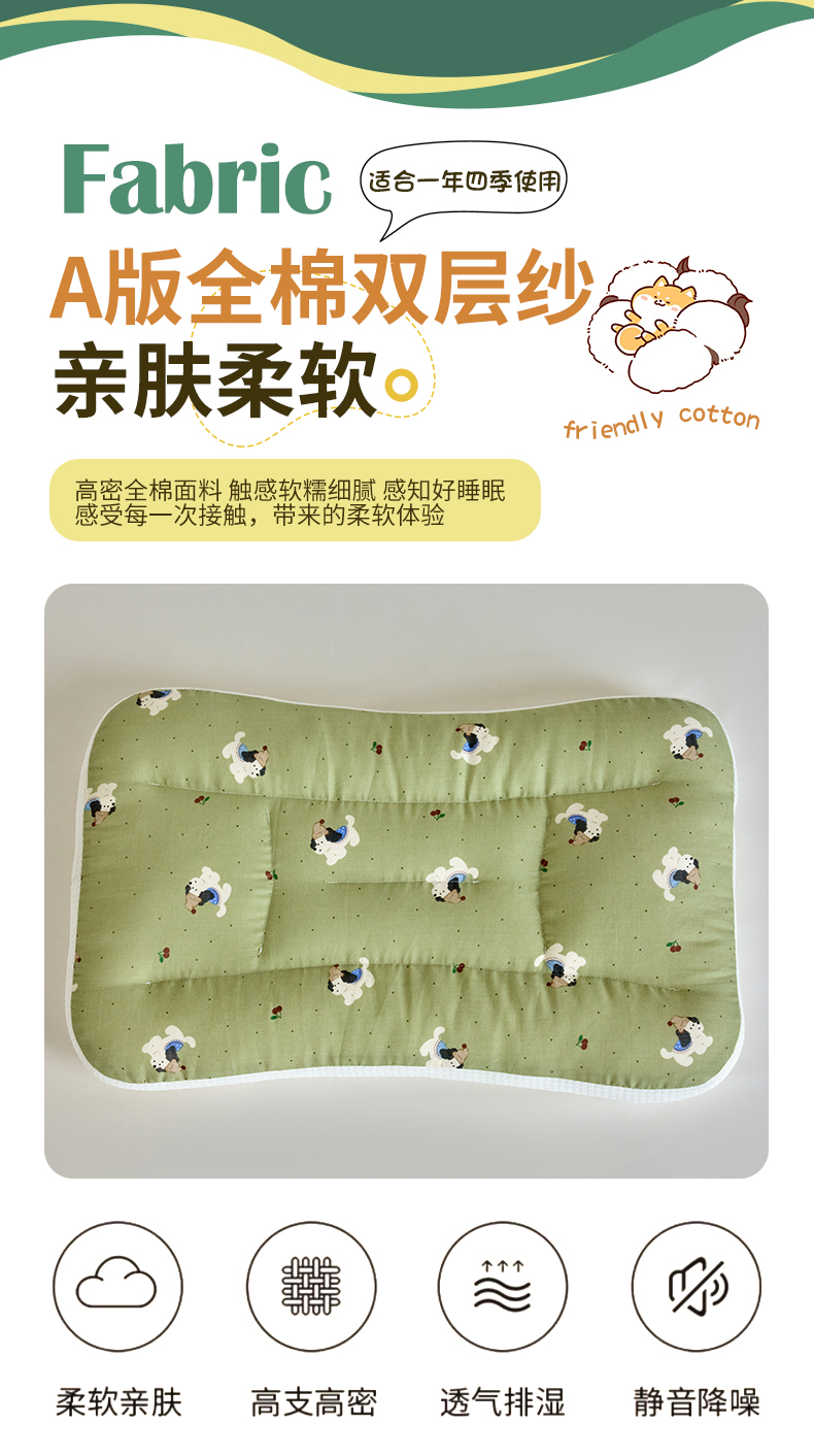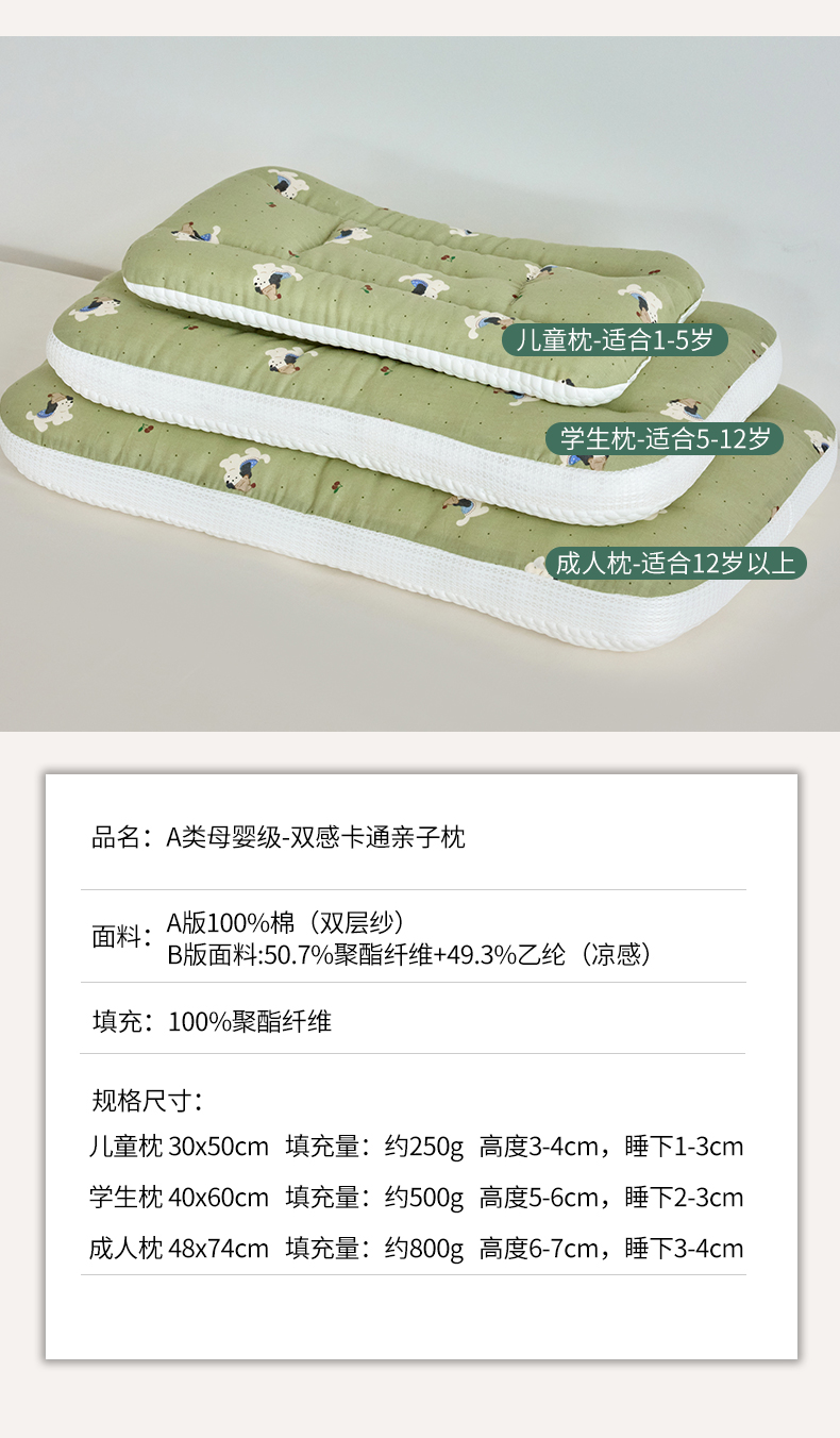 自然醒A类母婴级双感卡通亲子枕全棉双层纱枕头枕芯纯棉儿童幼儿园午睡学生成人护颈椎助睡眠XK