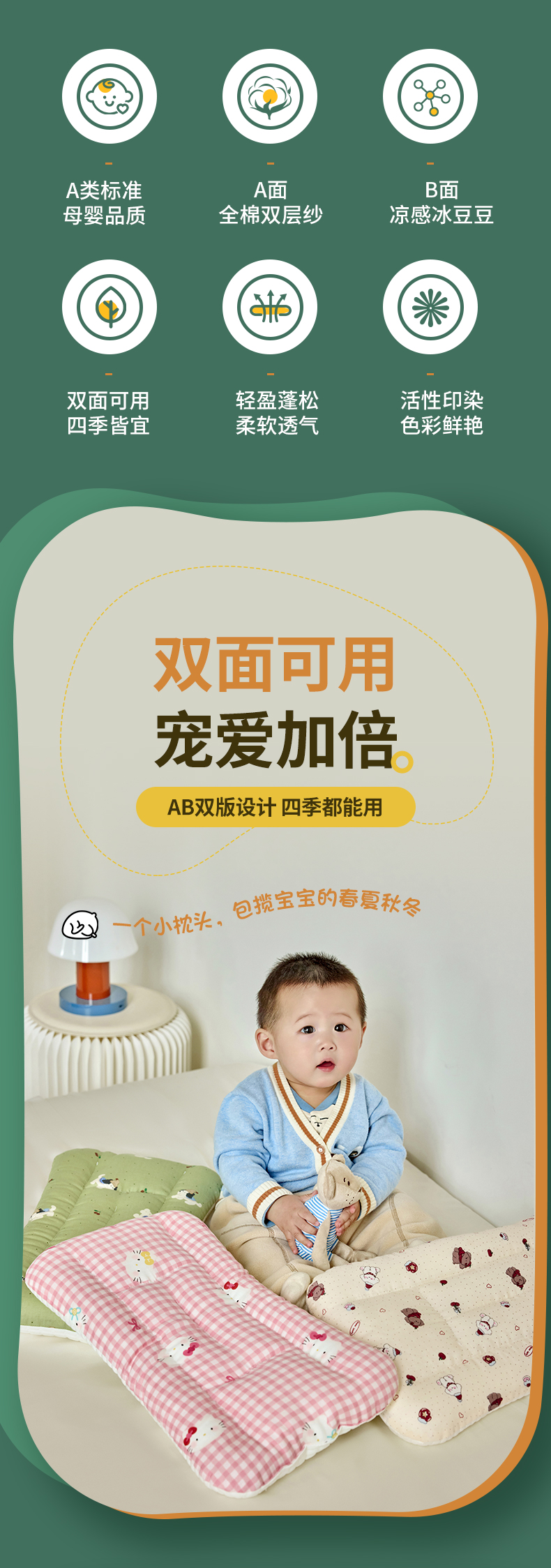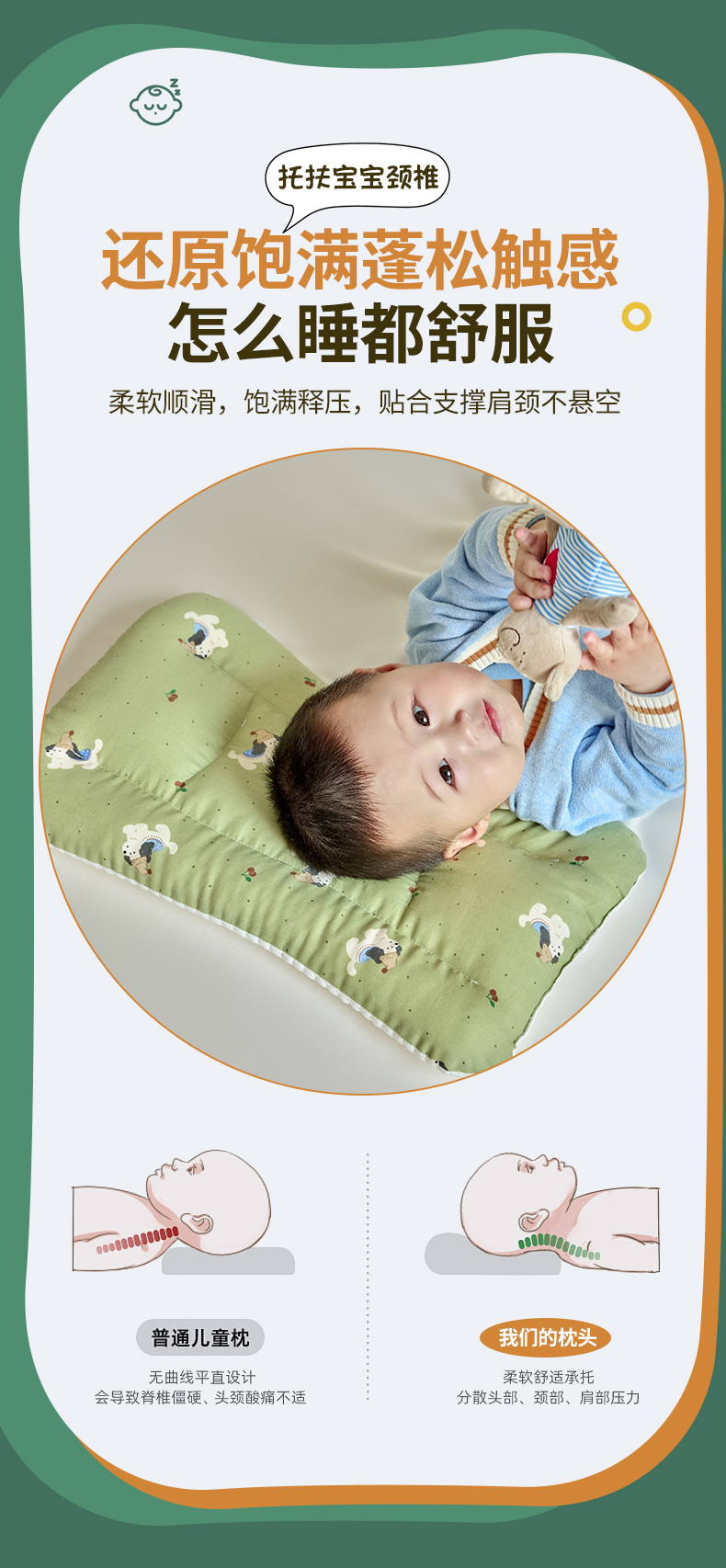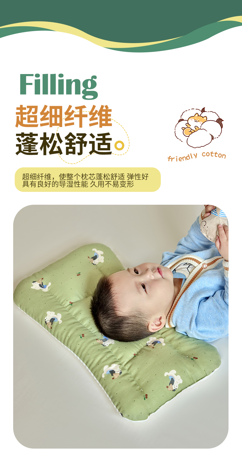 自然醒A类母婴级双感卡通亲子枕全棉双层纱枕头枕芯纯棉儿童幼儿园午睡学生成人护颈椎助睡眠XK