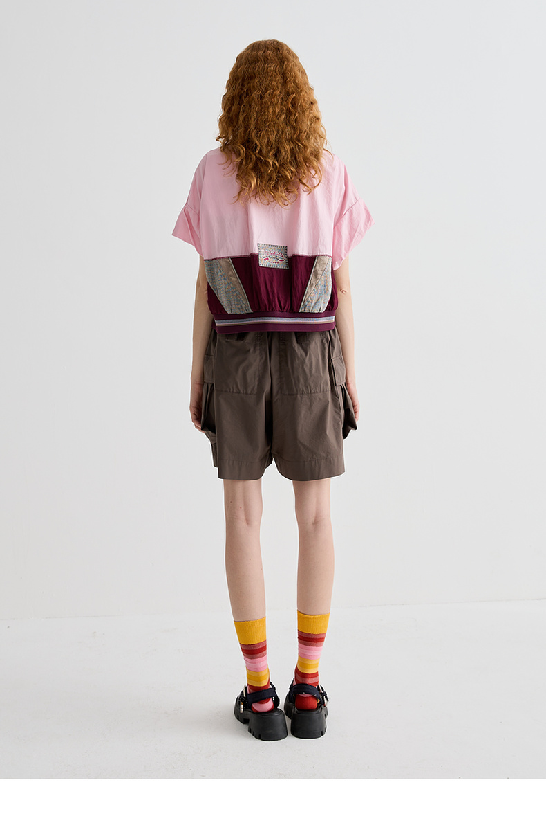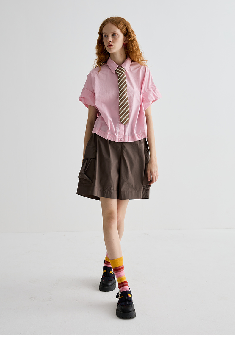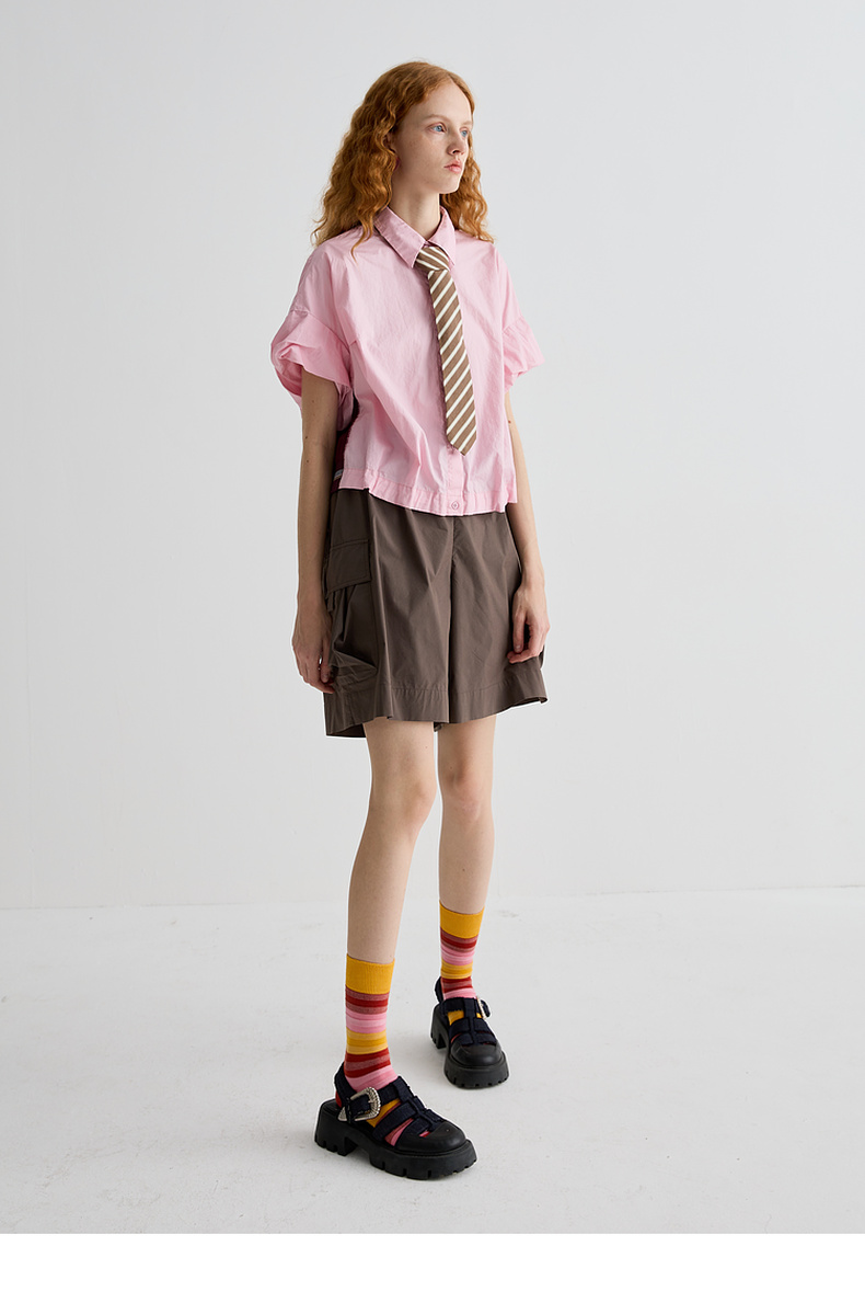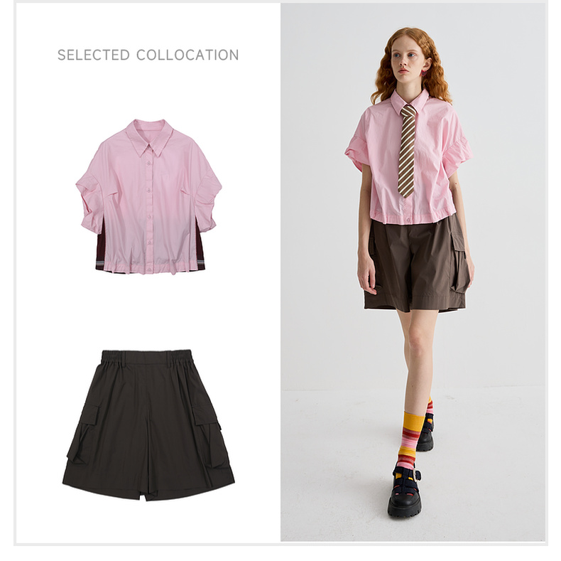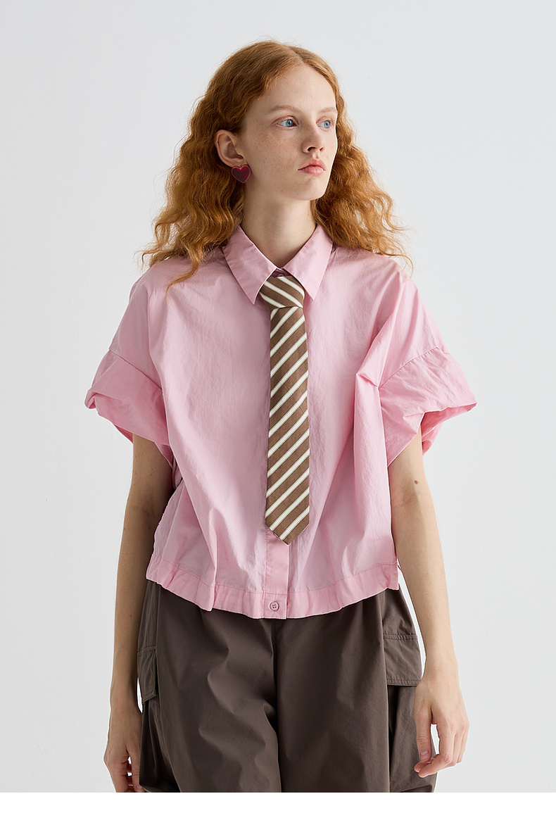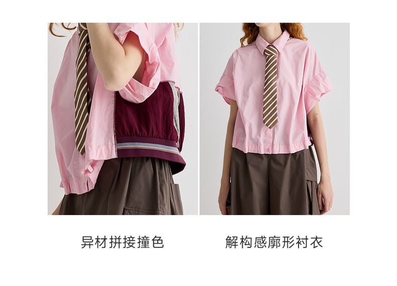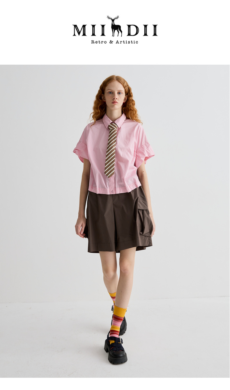 谜底衬衫短袖女2025夏季新品复古风通勤大廓形T型短衬衣252MC0595