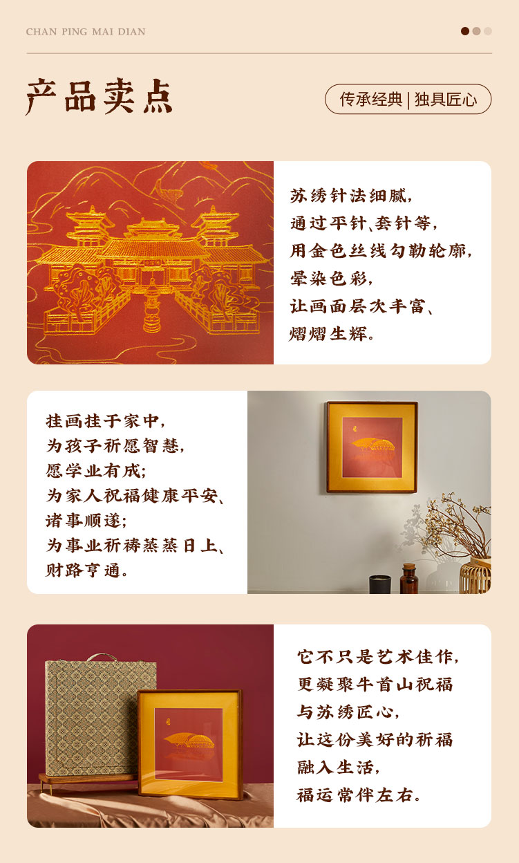 牛首山文创非遗苏绣成品刺绣客厅书房门店摆件挂画南京纪念品礼物