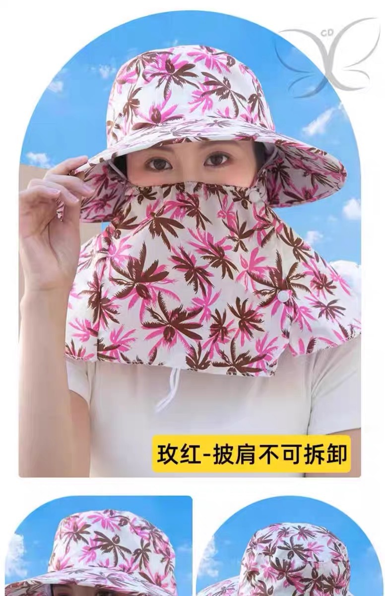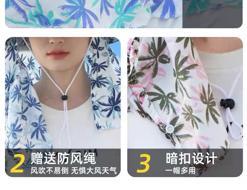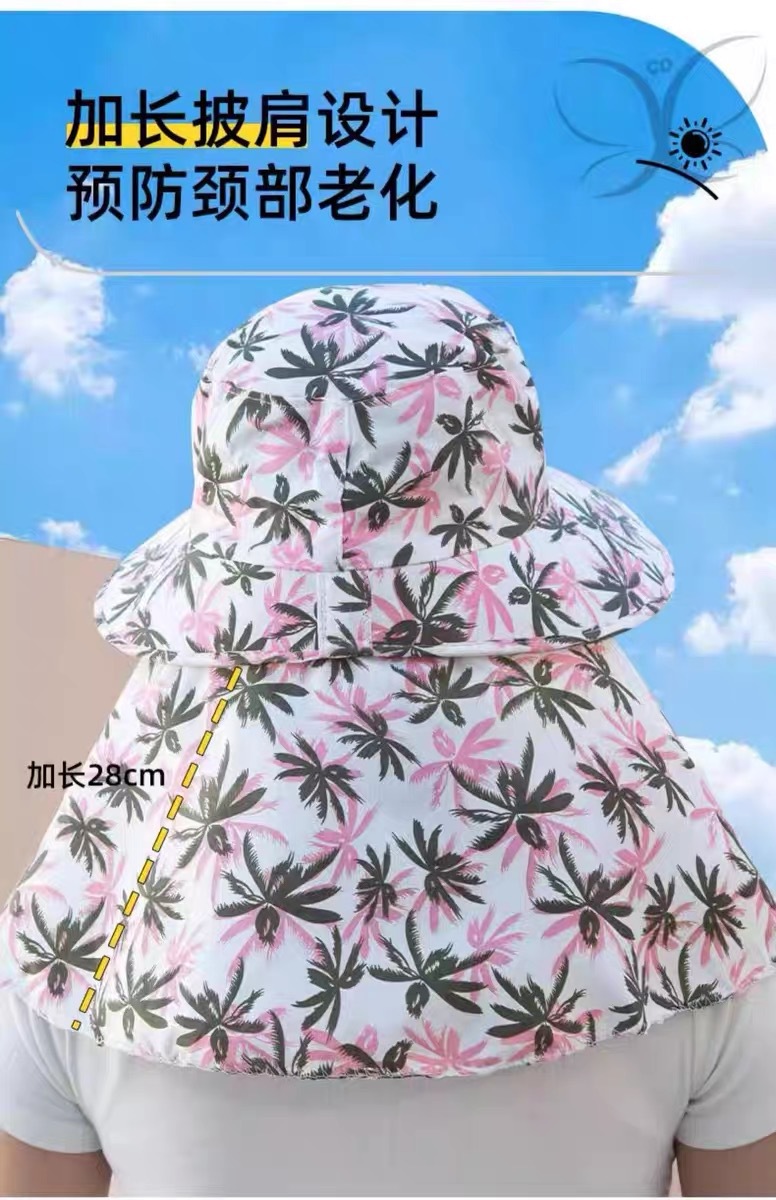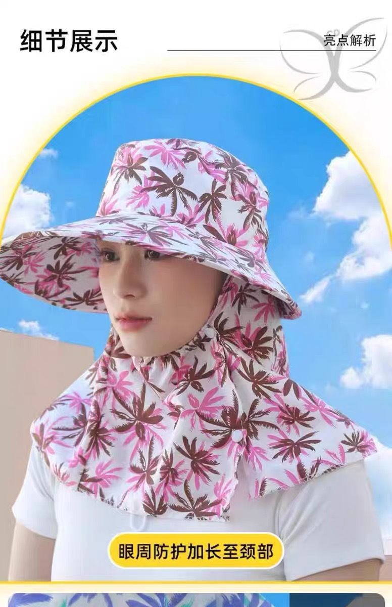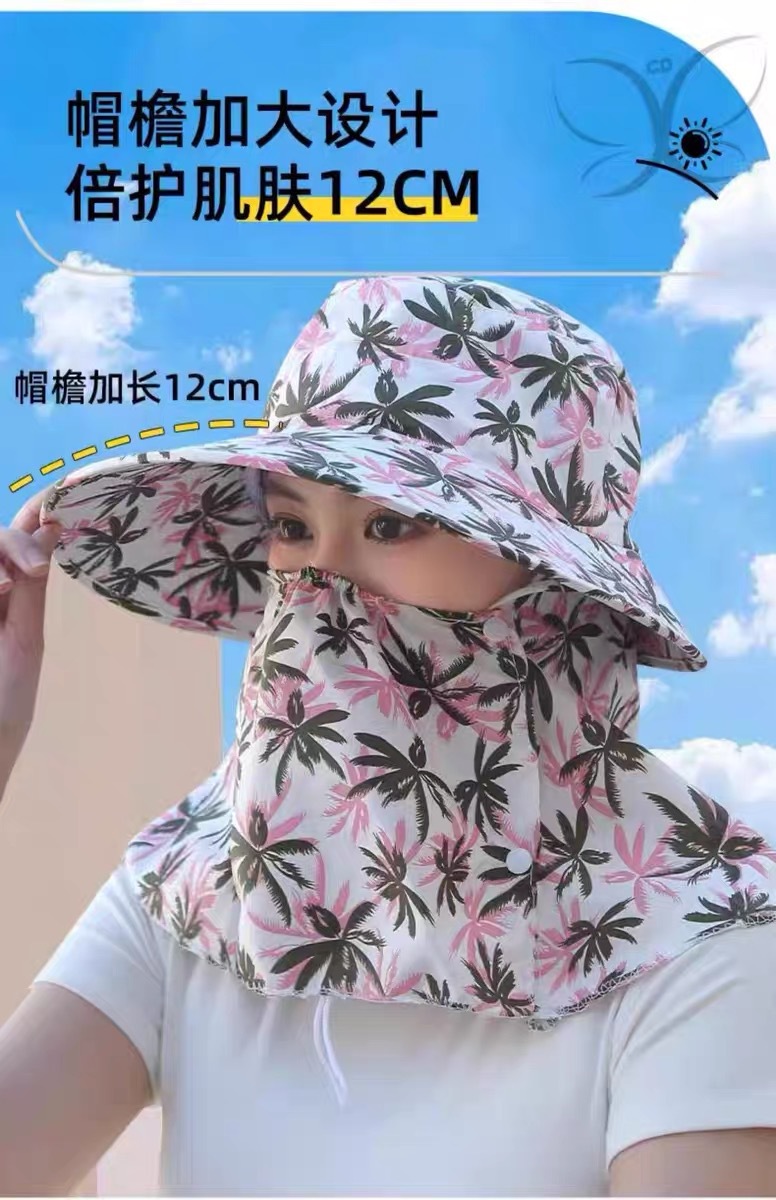新款夏季防晒帽防风防尘护脸护颈女骑车遮阳帽户外工作田间采茶帽