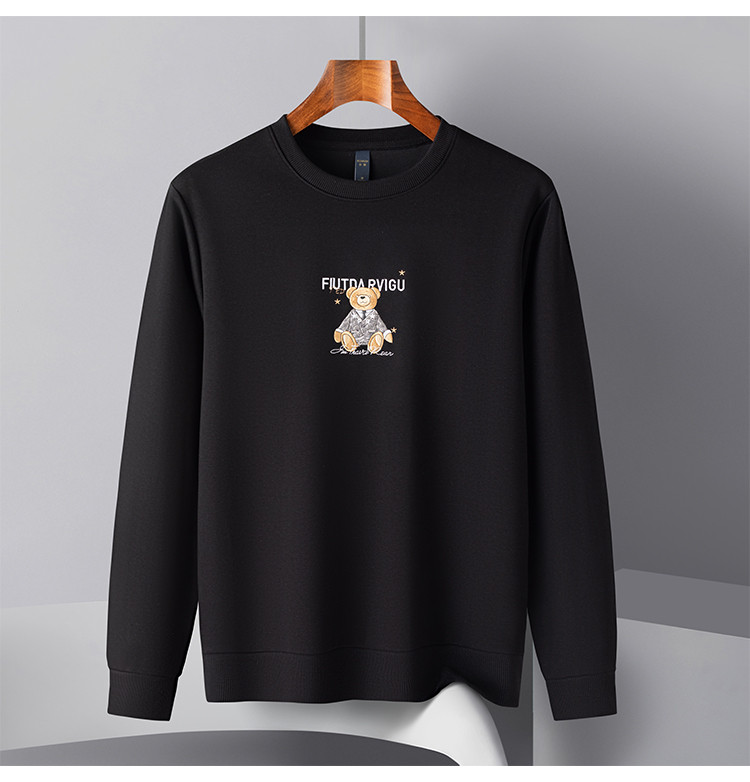 【桑蚕丝混纺】罗蒙春秋男装胸花绣花卫衣男士休闲百搭卫衣长袖圆领T恤上衣男