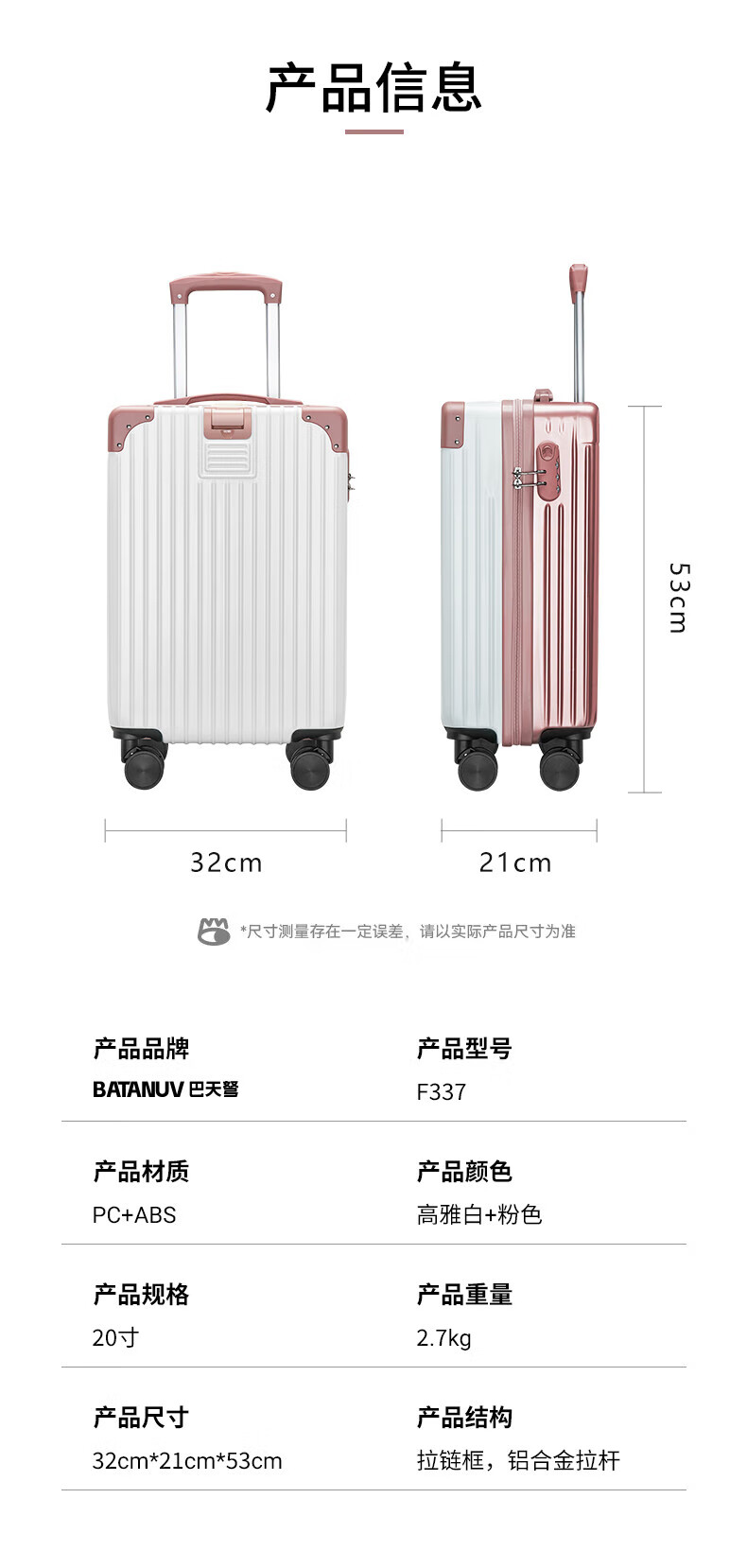 巴天弩(BATANUV) 时尚旅行拉杆箱20寸 F337 轻盈便携 自在出行