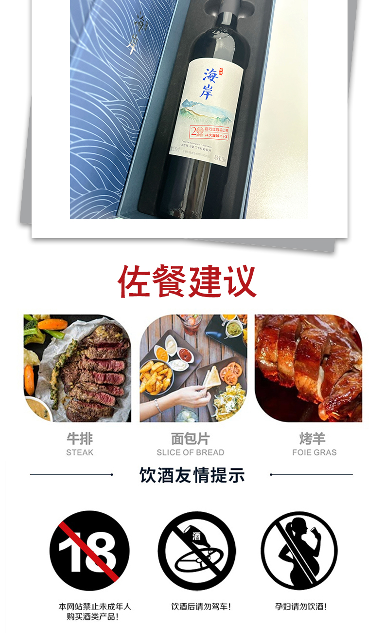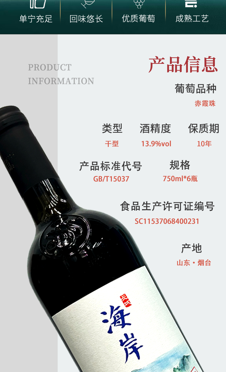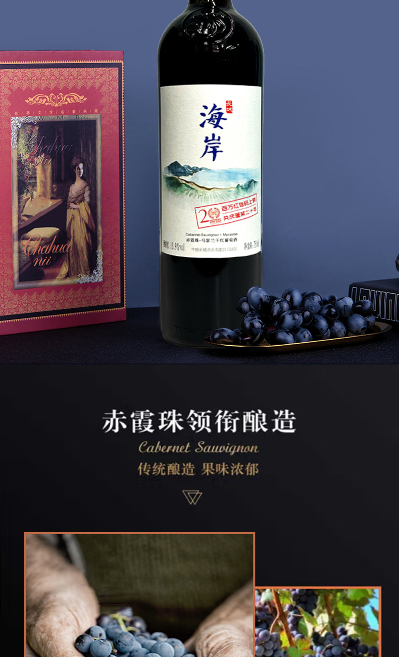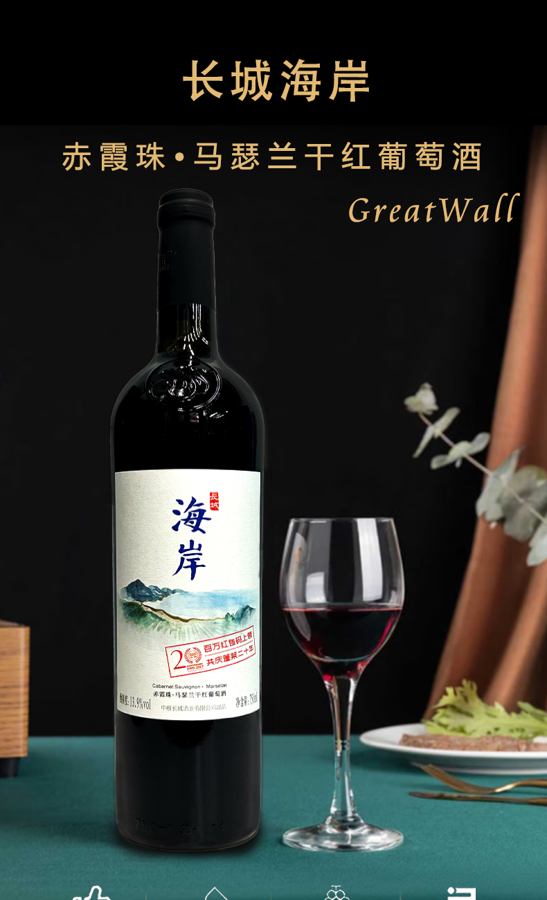 中粮长城海岸赤霞珠马瑟兰 干红葡萄酒 整箱750ml*6瓶包邮