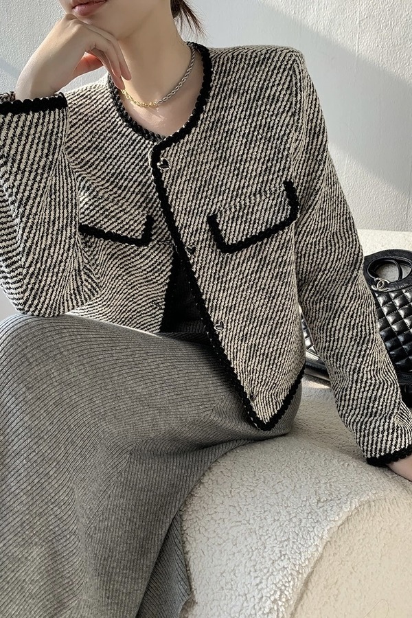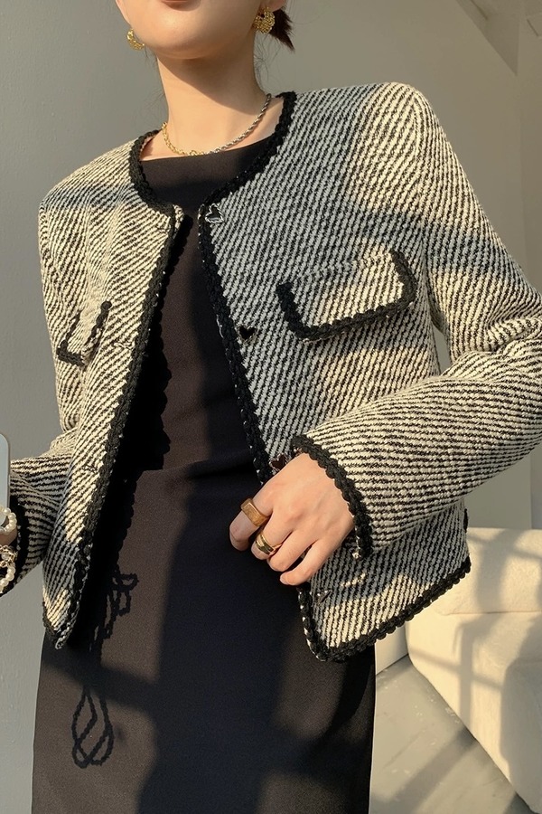 Le Malene 圆领斜纹单排扣外套 17289
