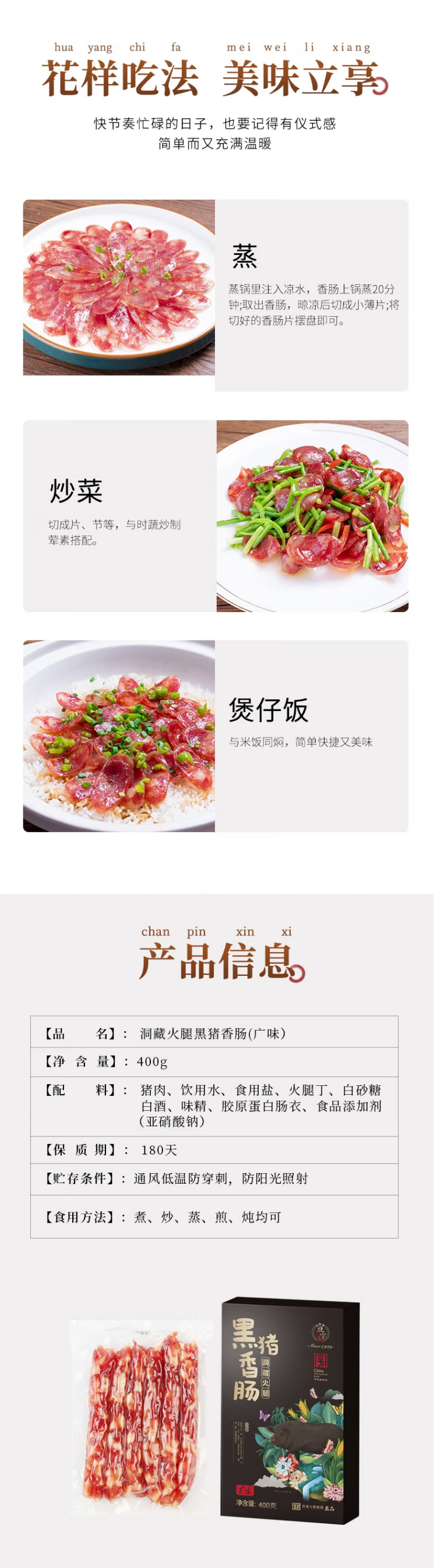云南宣威洞藏火腿黑猪香肠(广味)400g