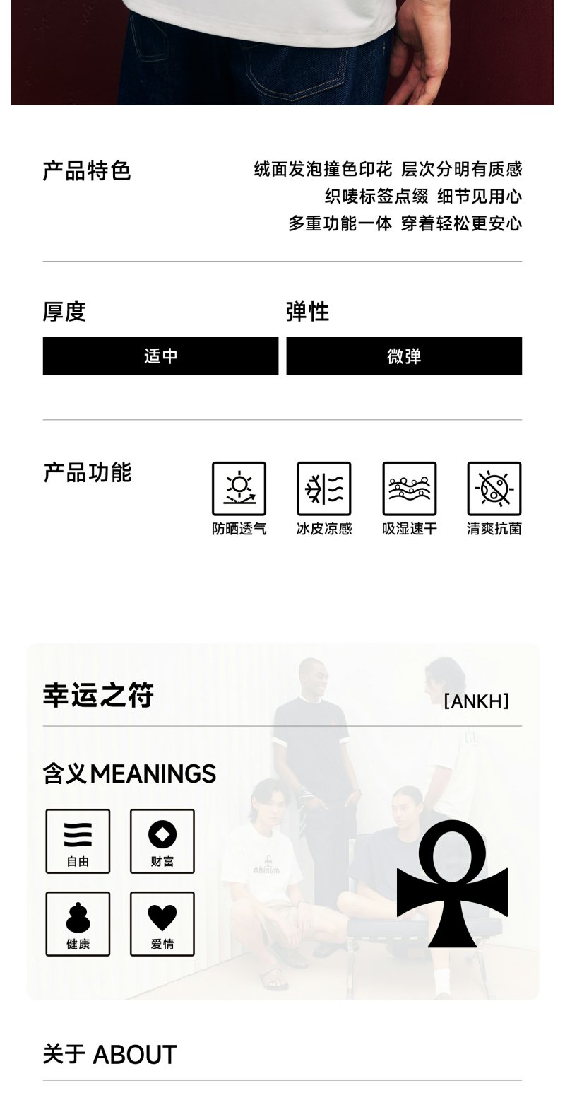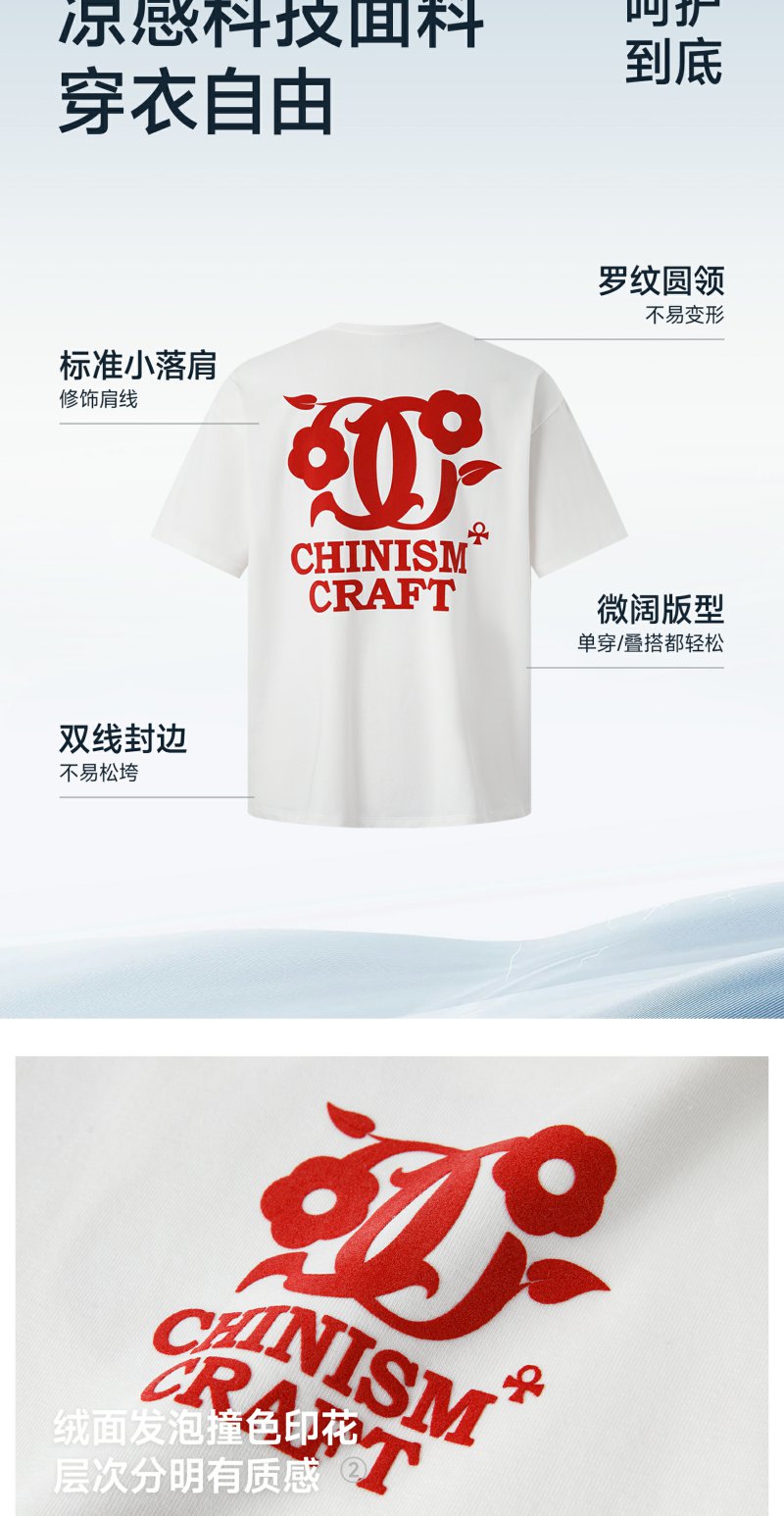 【凉感】CHINISM赤尘 CH幸运之符发泡印花短袖T恤男夏季抗菌上衣
