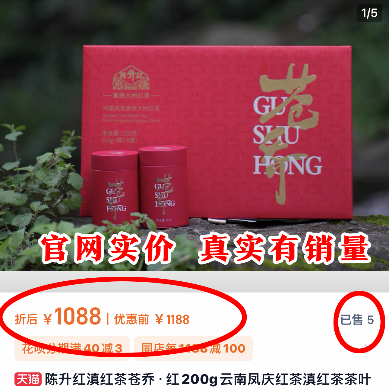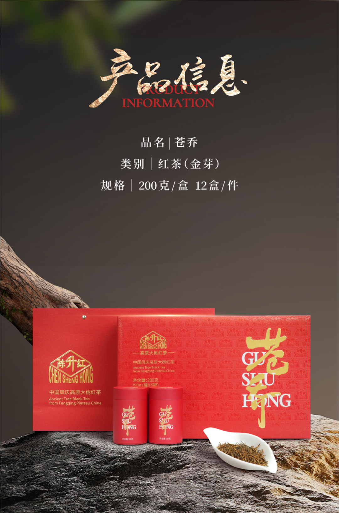 一级经销商的福利,纯补贴低价分享,禁止分享任何平台!陈升红滇红茶苍乔·红!净重:200g 云南凤庆红茶滇红茶茶叶盒装!