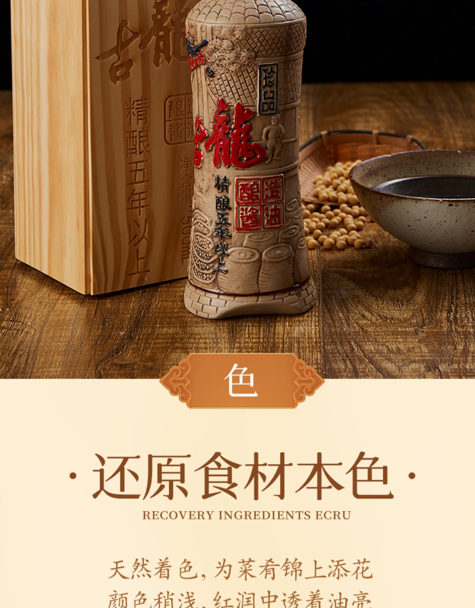 古龙食品 珍品酱油黄豆古法酿晒五年特级酱油500ml烹饪厨房调味
