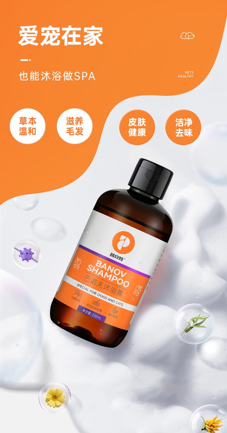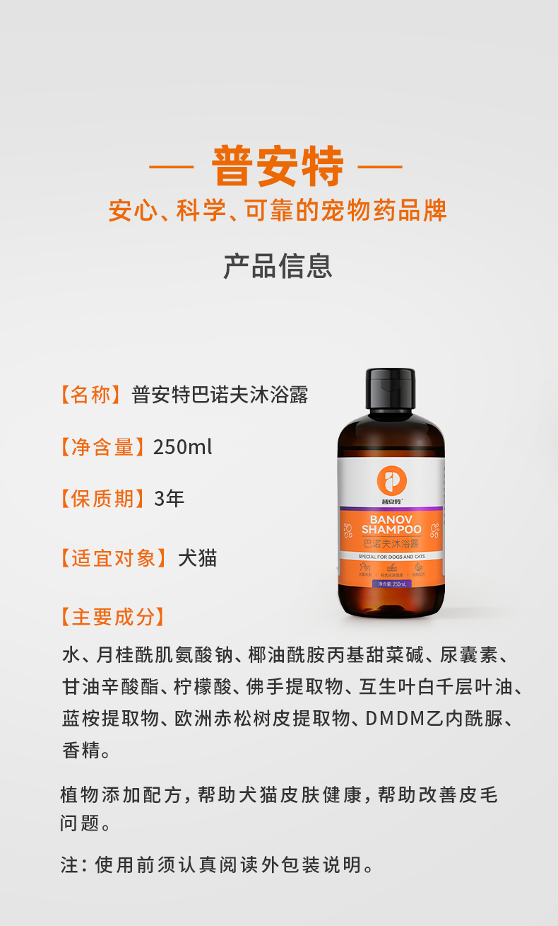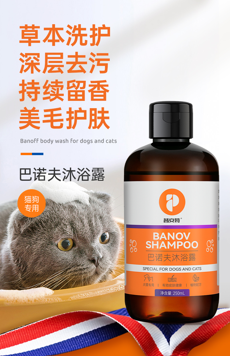【买1送1】普安特狗狗沐浴露猫咪洗澡专用沐浴液白毛除臭持久留香宠物巴诺夫250ml(产品升级,成分有所不同)
