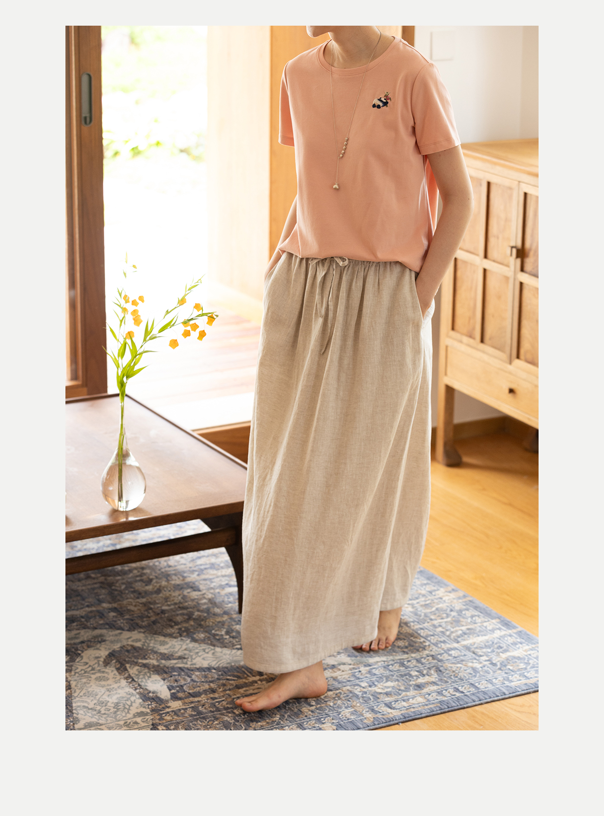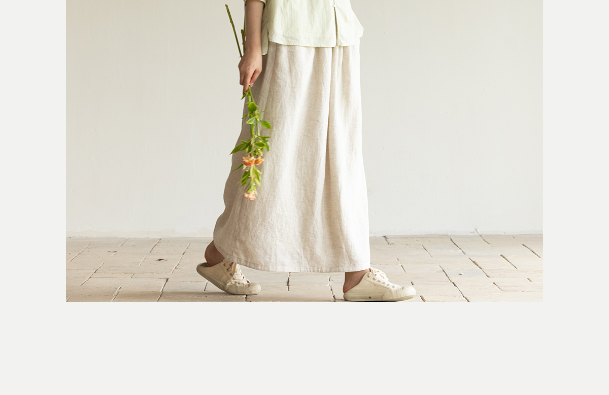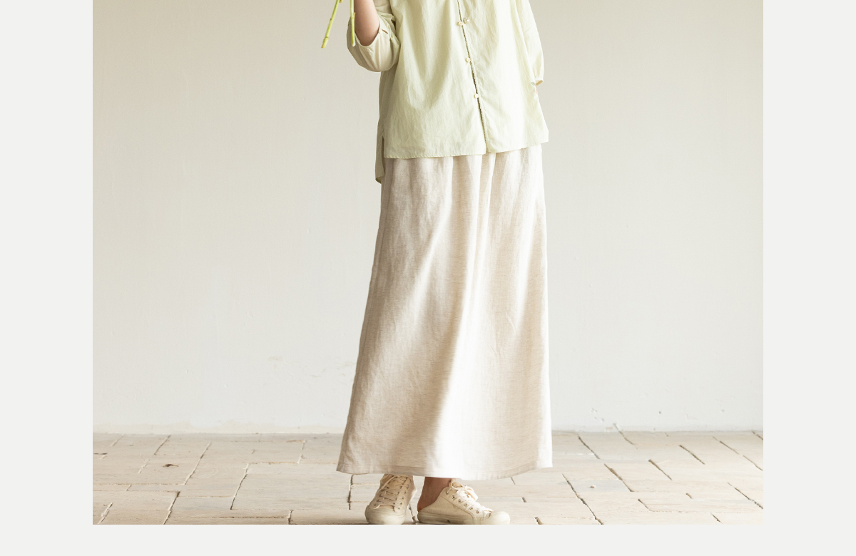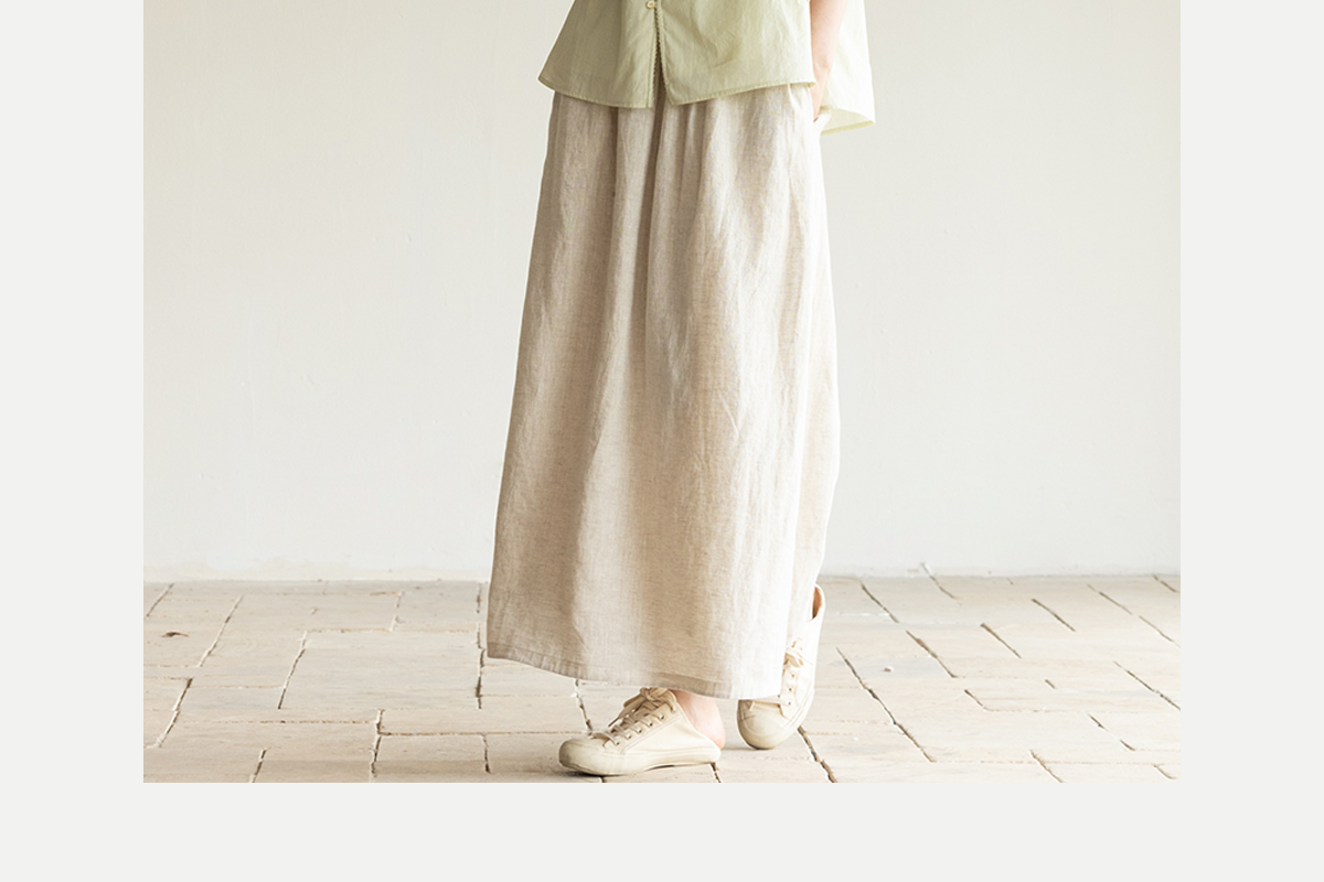 牧衣游原创进口亚麻半身裙夏轻薄清凉质朴休闲宽松A字半裙 山似玉