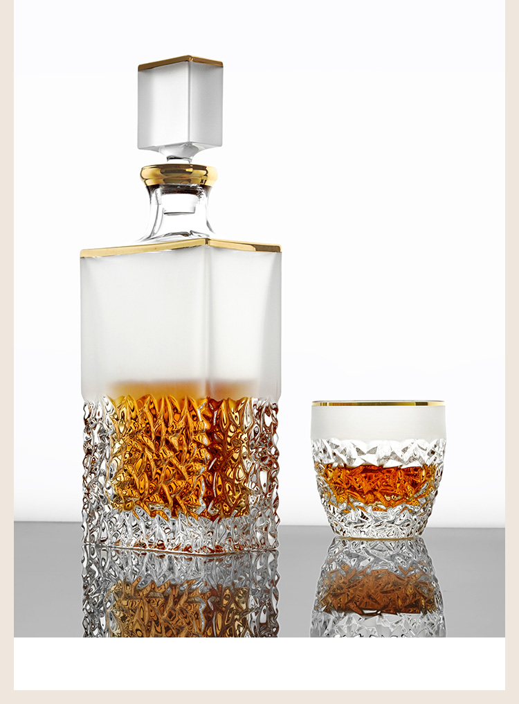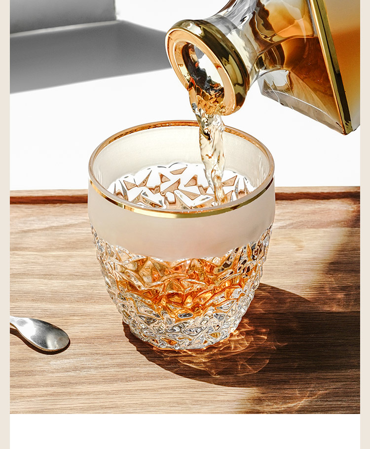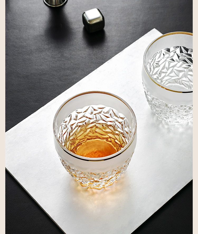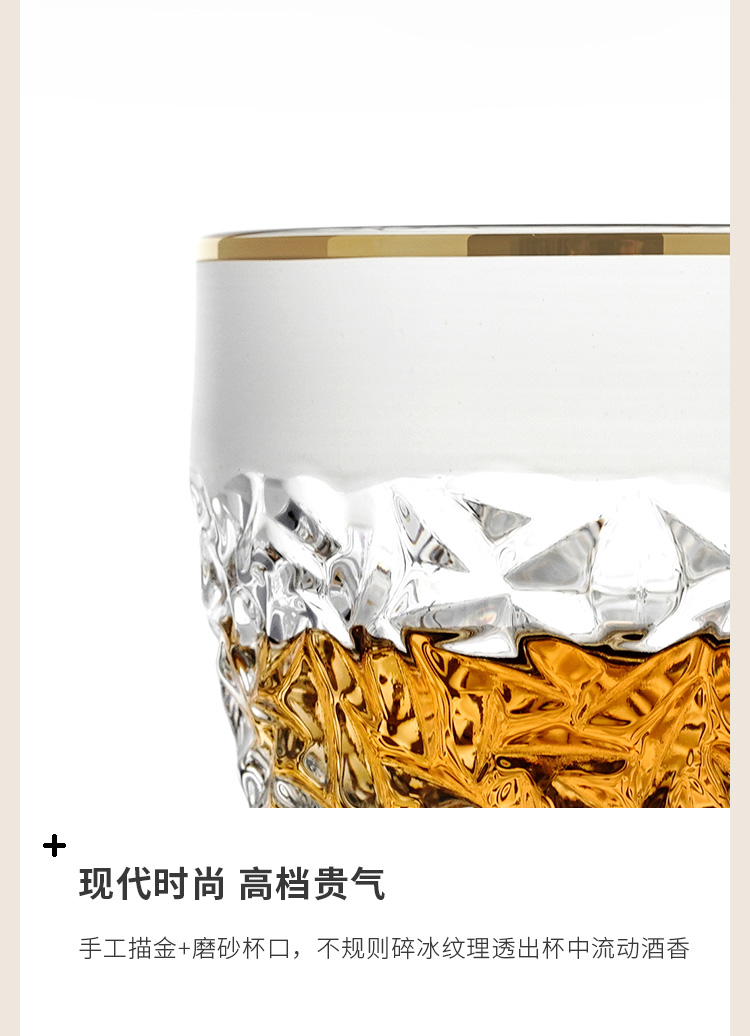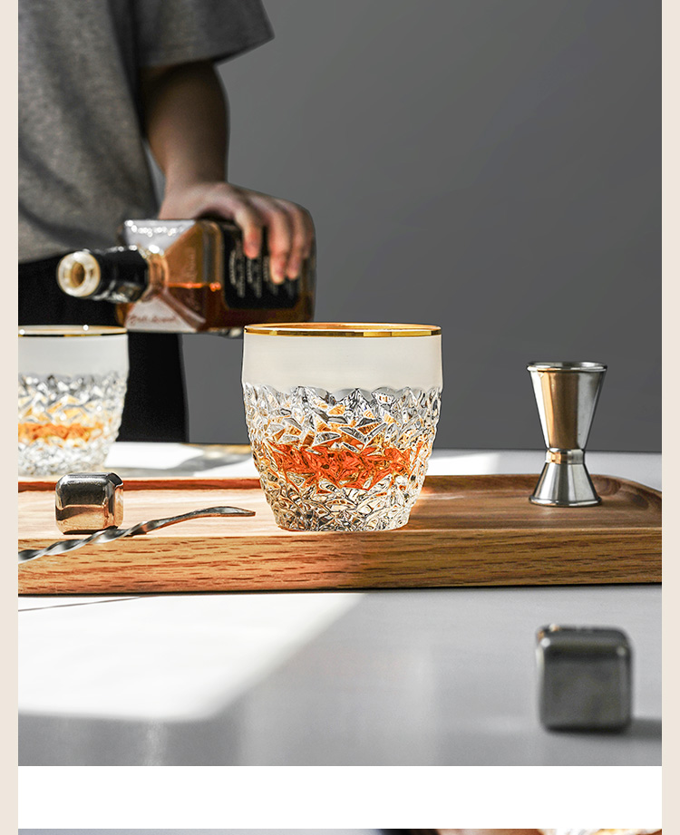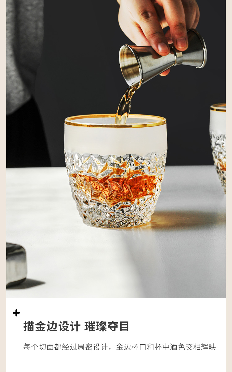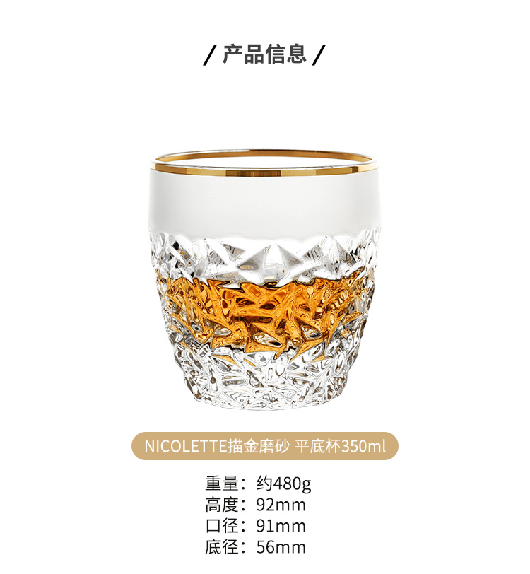 捷克进口BOHEMIA磨砂金边手工描金威士忌酒杯