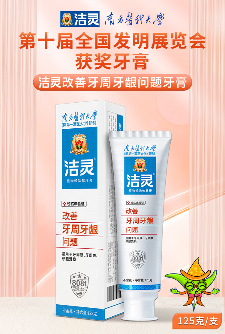 洁灵 丨功效牙膏(牙周牙龈问题)适用牙周退缩牙龈护理 牙周护理 天然本草香型 125g/支*2支