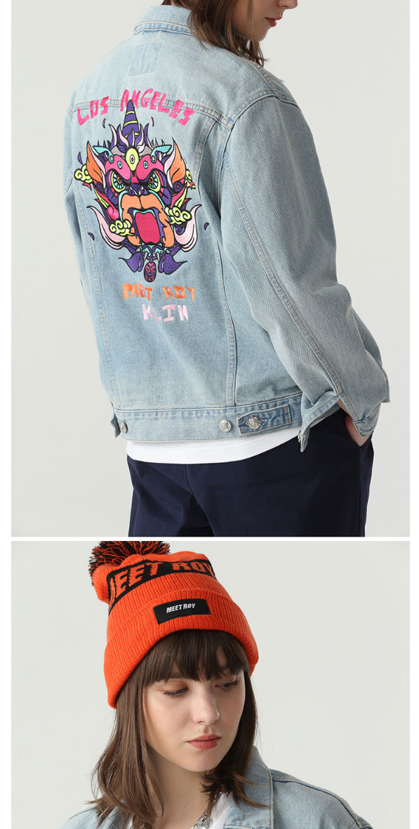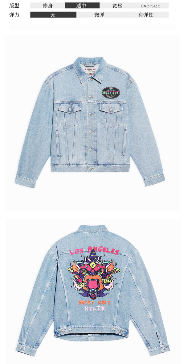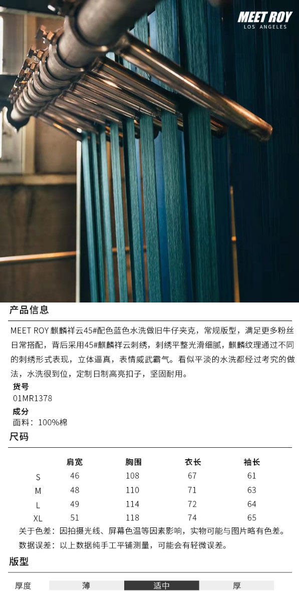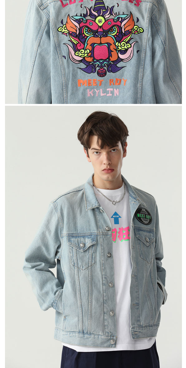 MEET.ROY麒麟祥云系列45#刺绣 蓝色水洗做旧牛仔夹克 常规版型01MR1378
