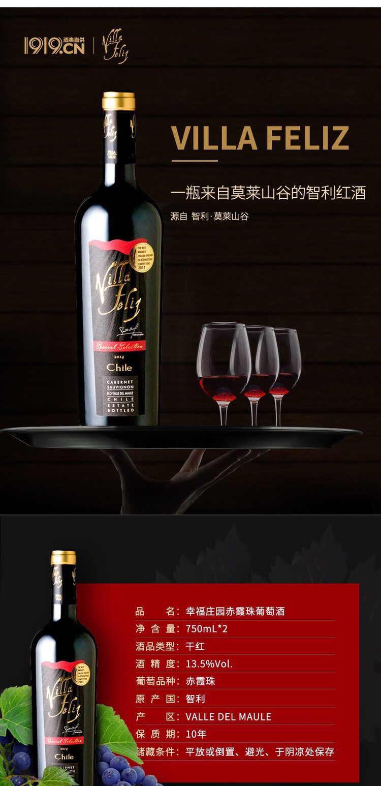 幸福庄园特选赤霞珠干红葡萄酒750ml 6瓶装(省内包邮)
