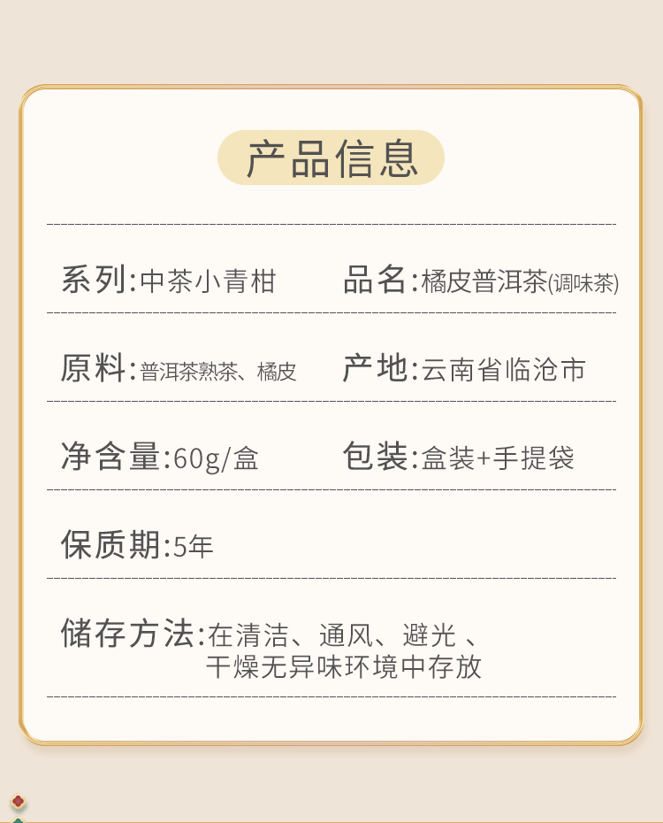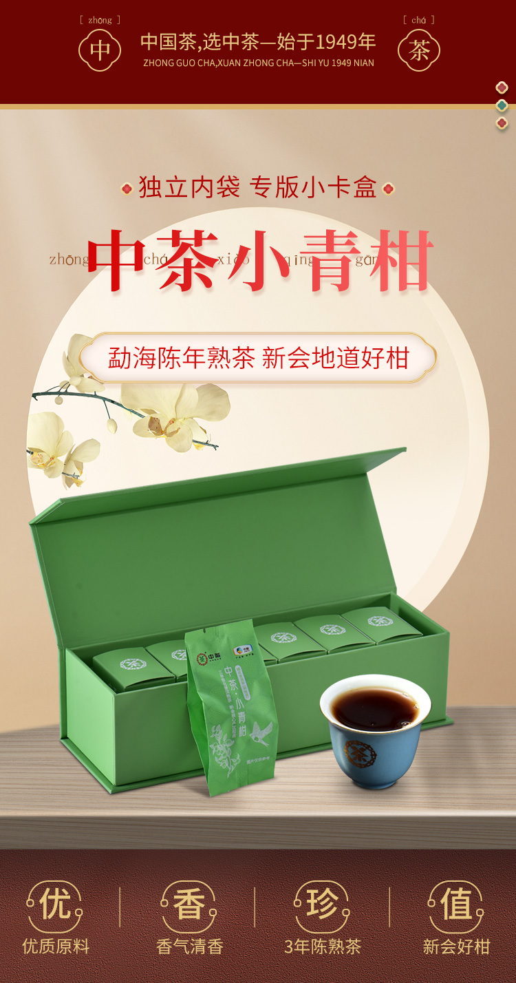 2022年中茶小青柑 普洱茶60克/盒/6粒装 精选广东新会核心产区小青柑