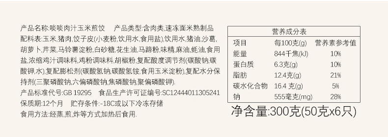 啖啖肉汁玉米煎饺300g/6只装 |花尾渡