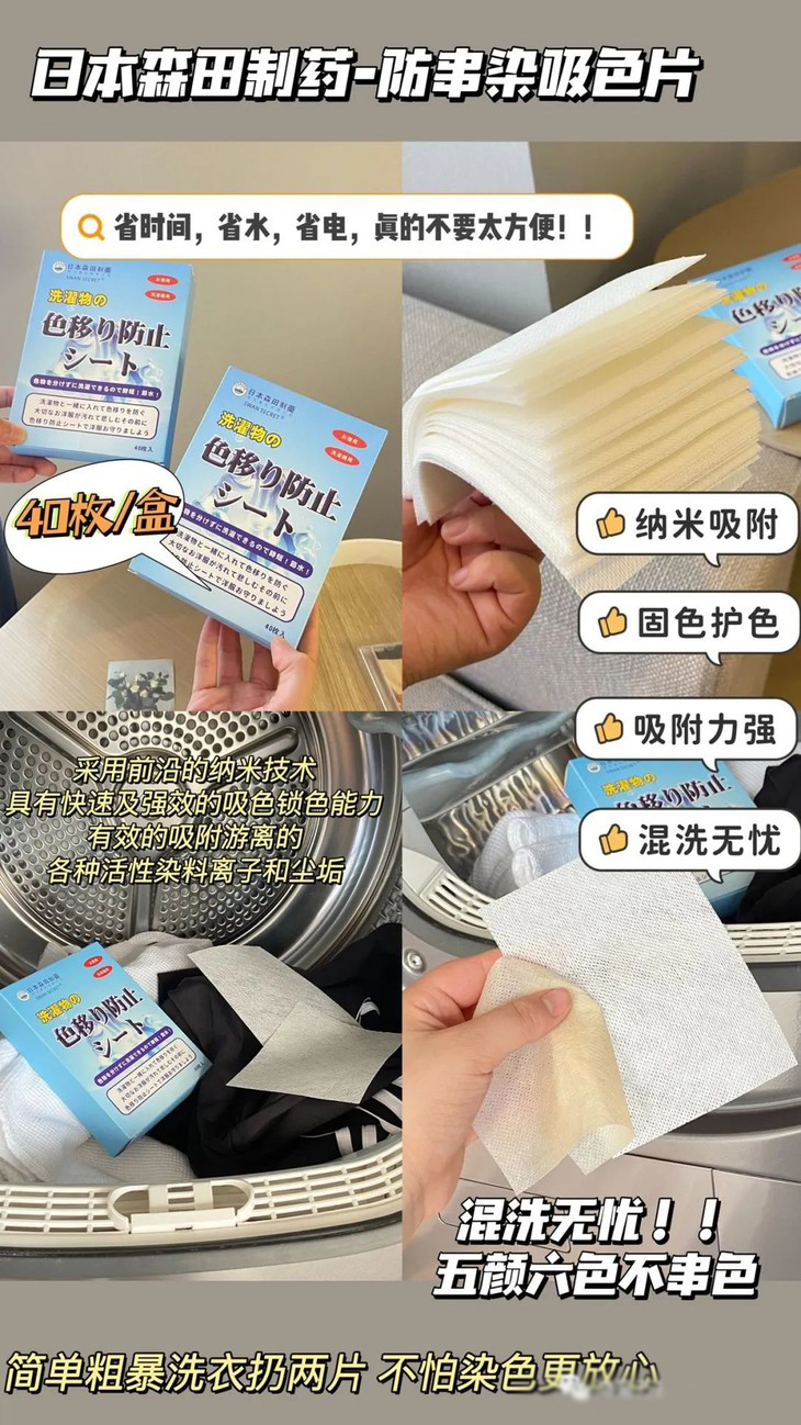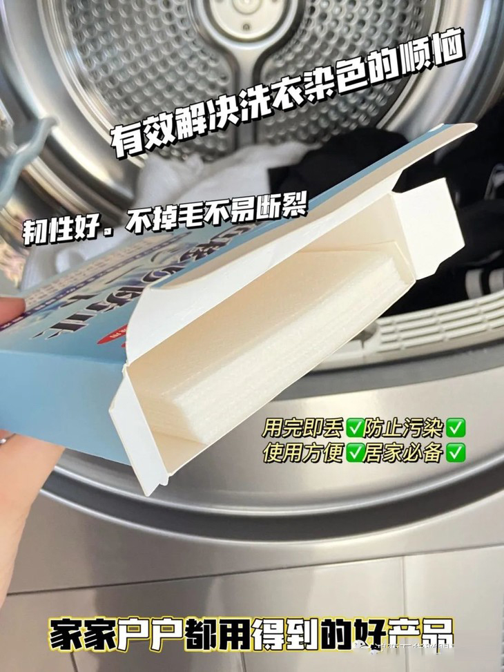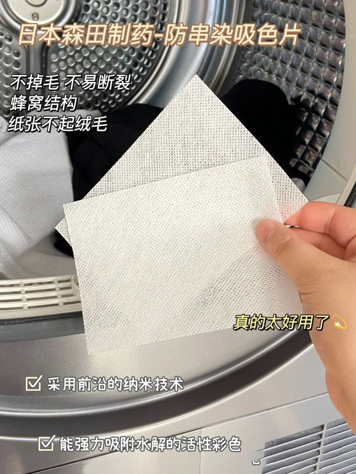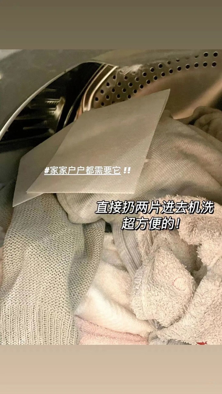 这个吸色片真心好用,材质摸起来很厚实,衣服再也不怕被染色了,适合于各种类型洗衣机。家居女神洗衣宝藏品,懒人必备!