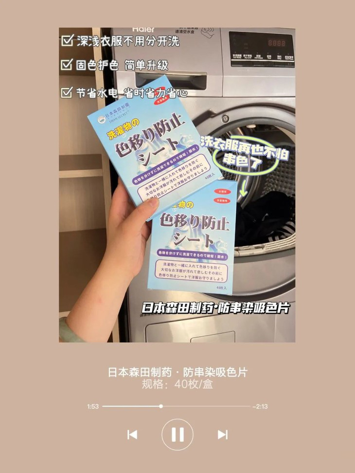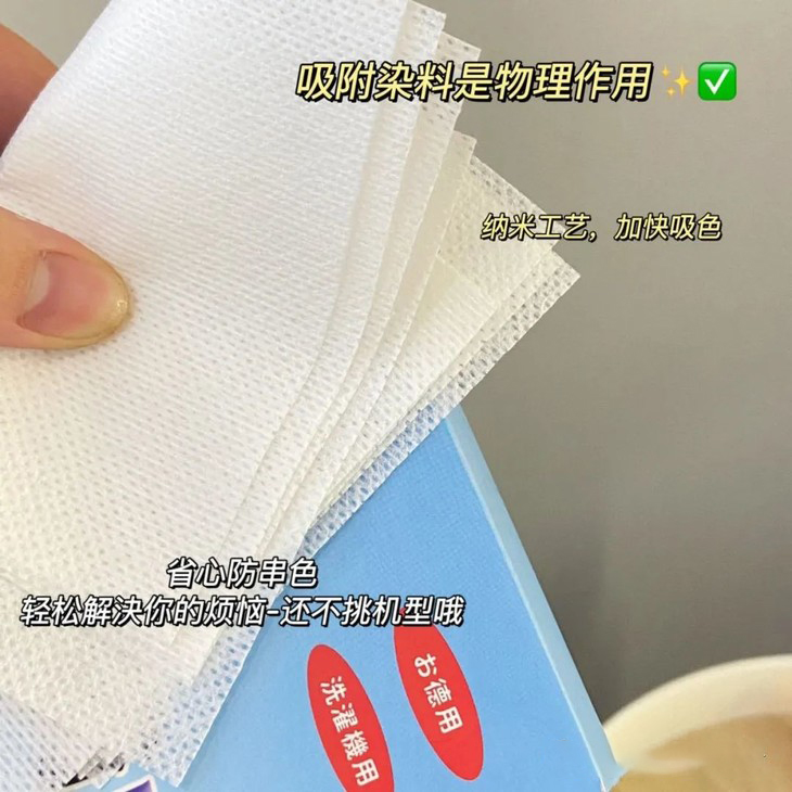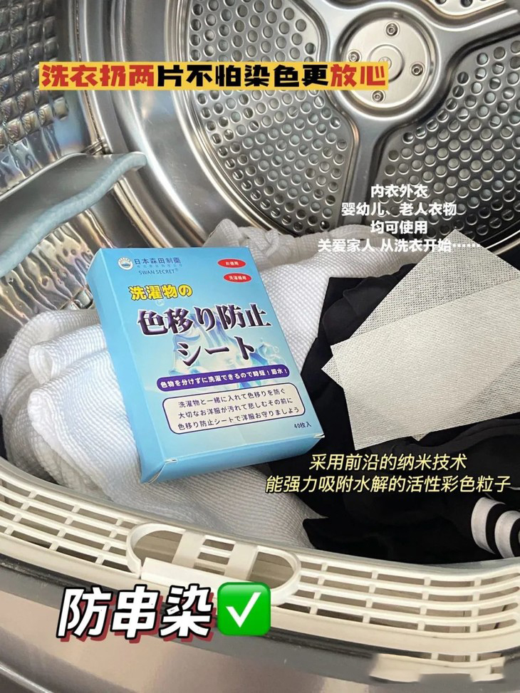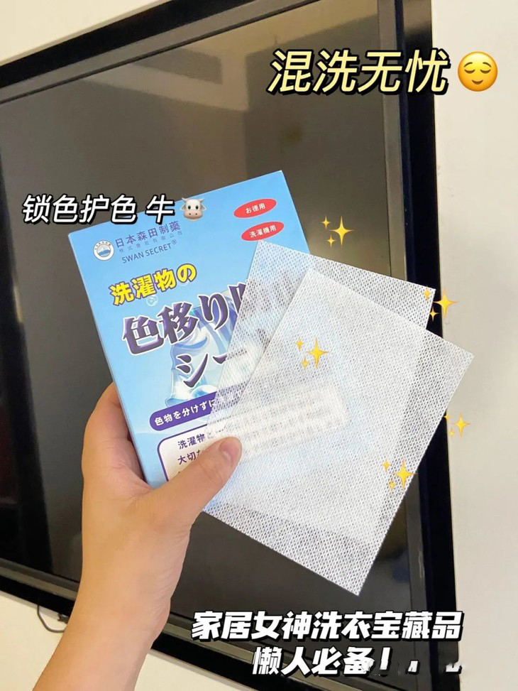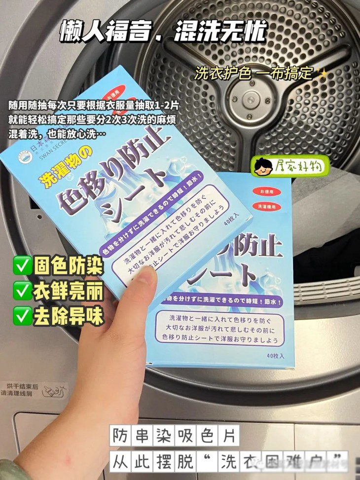 这个吸色片真心好用,材质摸起来很厚实,衣服再也不怕被染色了,适合于各种类型洗衣机。家居女神洗衣宝藏品,懒人必备!