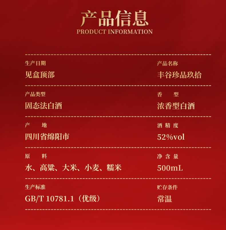 丰谷珍品玖拾52度 500ml*1瓶(买1送1)