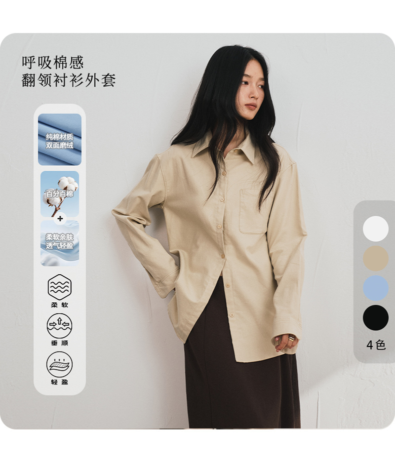 优选丨欧可纪OUKEJI 静奢通勤风纯棉磨毛宽松极简长袖衬衫
