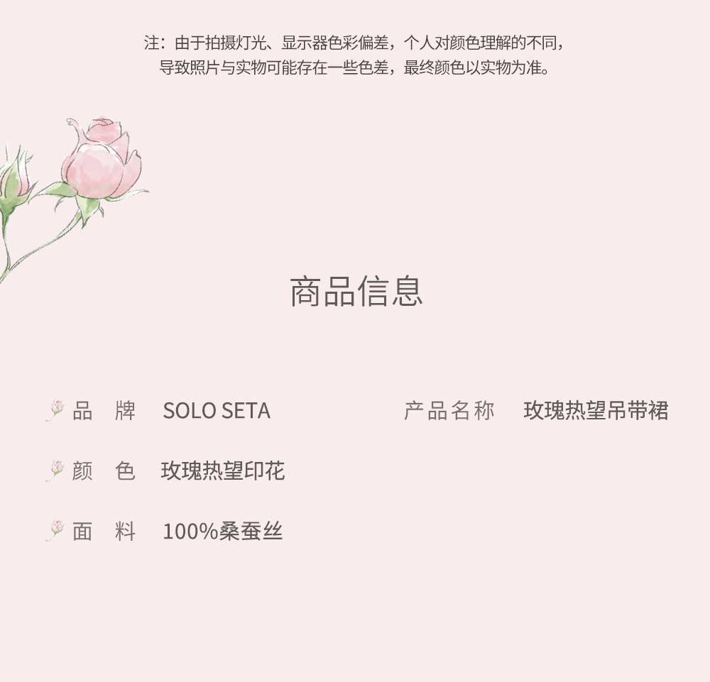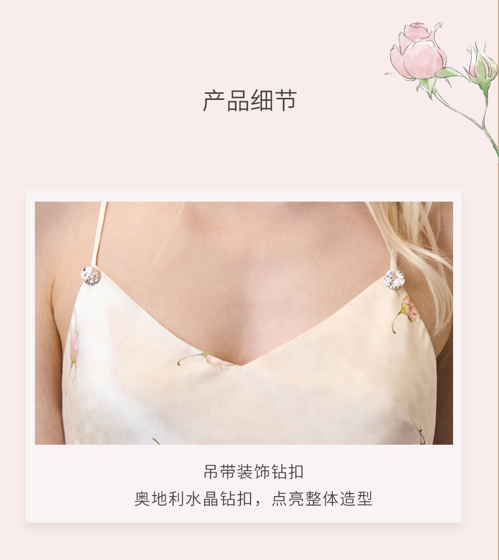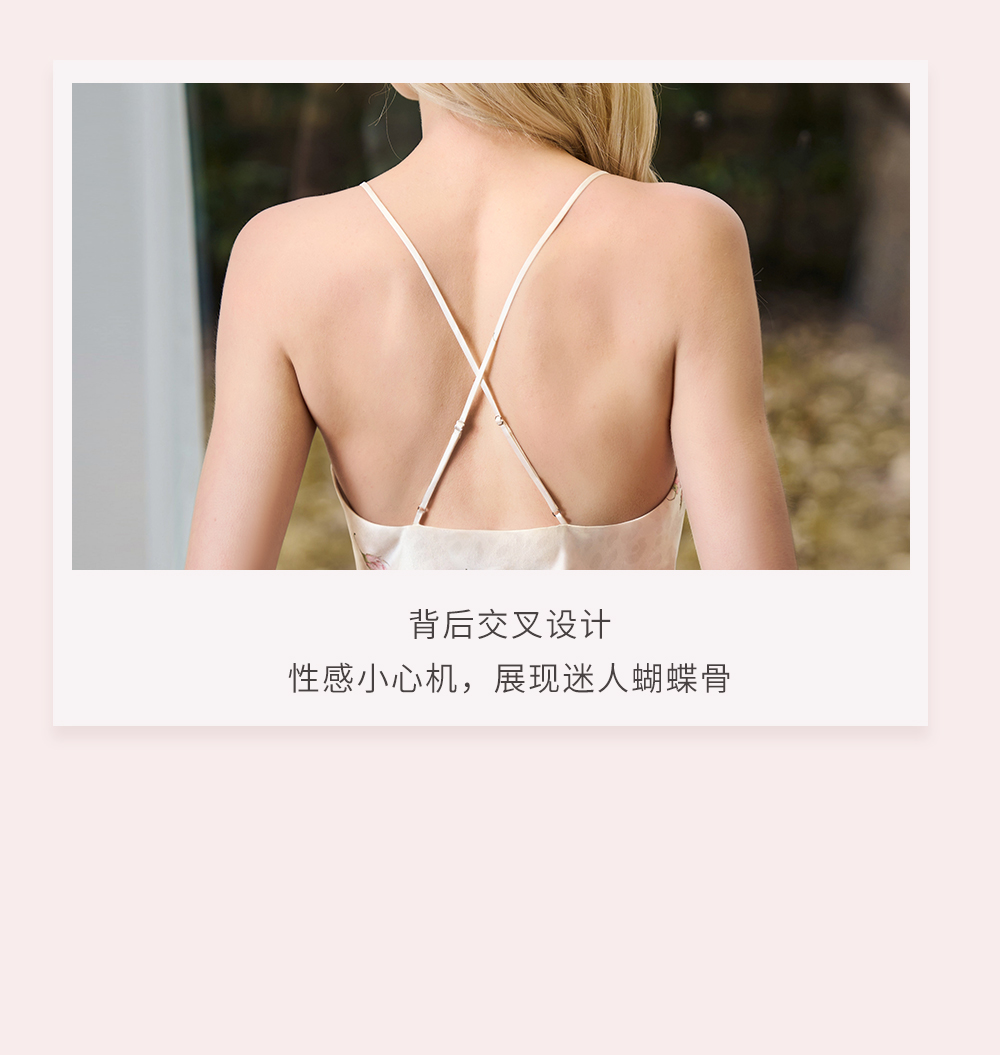 Solo seta22姆米女士真丝印花睡裙桑蚕丝吊带短裙情人节送礼春夏