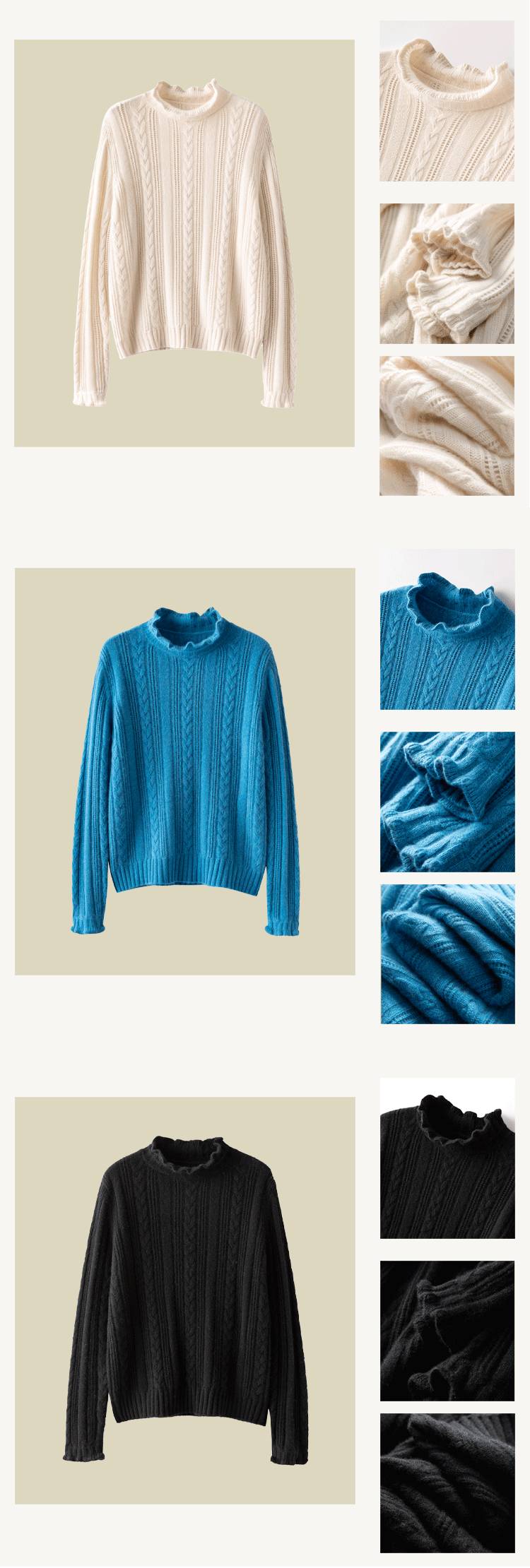 MENG·Baby Cashmere【星光少女】100山羊绒半高花边领毛衣