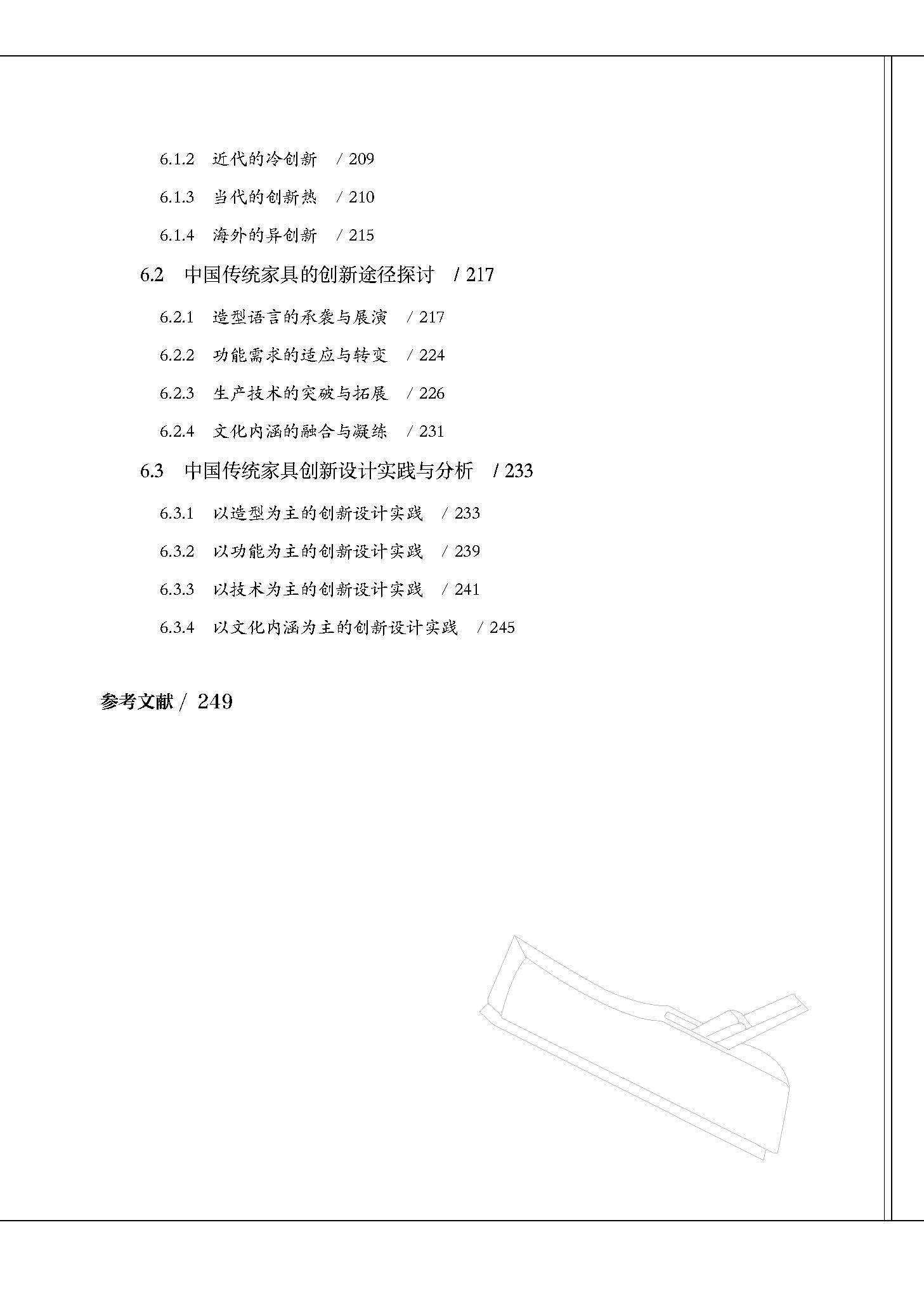 文化与艺术特色的形成具有极为重要的作用,赋予家具不同的“性格”与“身份”,既反映了中国家具的共性特征,也反映了个性特征。通过本章的介绍,意欲培养学生的观察能力、分析能力和方法意识。第5章以榫卯结构性能为目标,侧重于技术和科学内容的组织,意欲培养学生的学理意识。通过前述内容的铺垫,第6章以中国传统家具的设计创新为目标,通过对传统家具的创新历程、创新途径和创新实践的梳理总结,引导和塑造学生的创新思维。