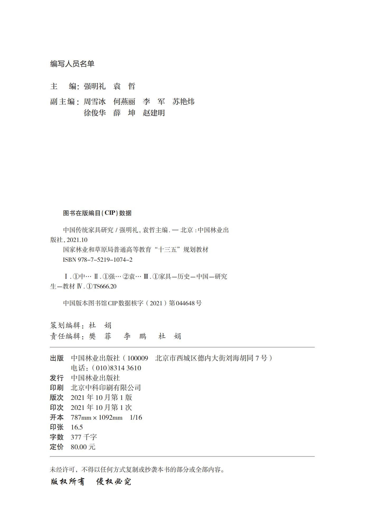 中国传统家具研究 强明礼 袁哲 国家林业和草原局普通高等教育十三五规划教材1074 中国林业出版社