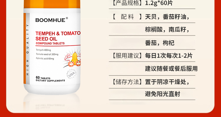 【礼想心动】BOOMHUE® 博唤 天贝番茄籽油复合压片糖果 60片
