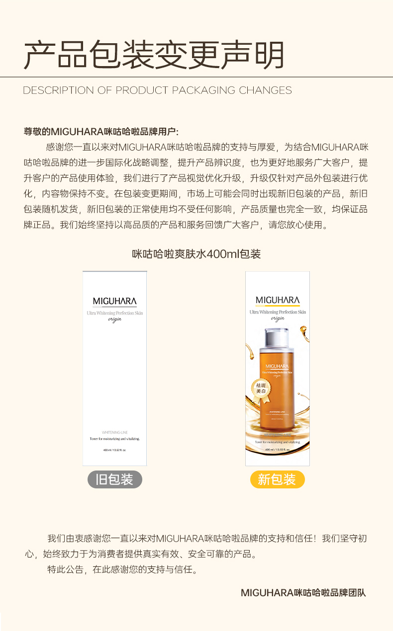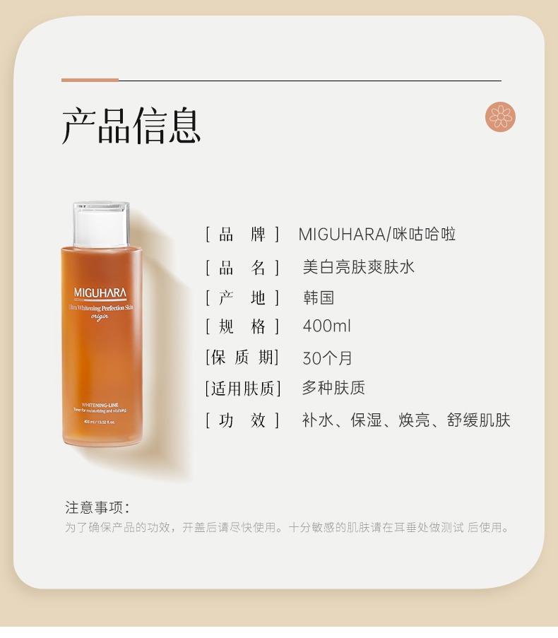 MIGUHARA/咪咕哈啦 湿敷水烟酰胺美白去黄保湿爽肤护肤水400ml/瓶