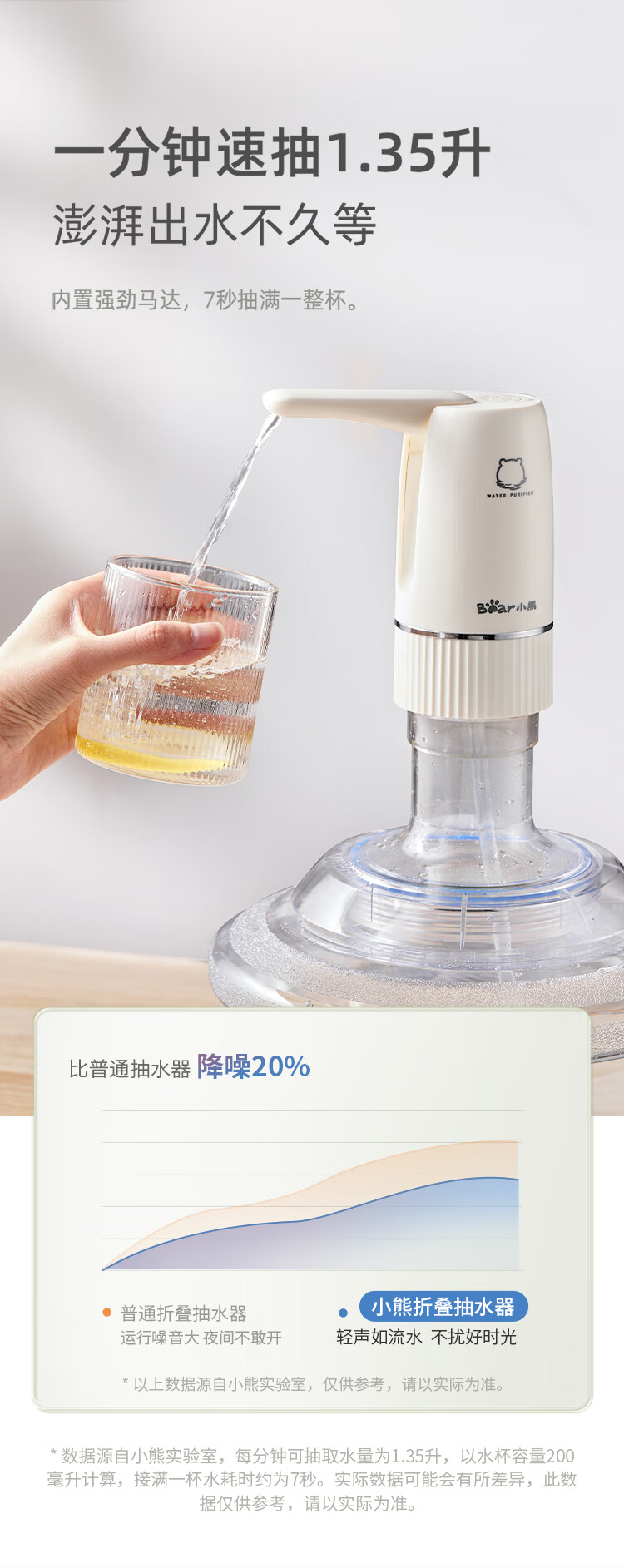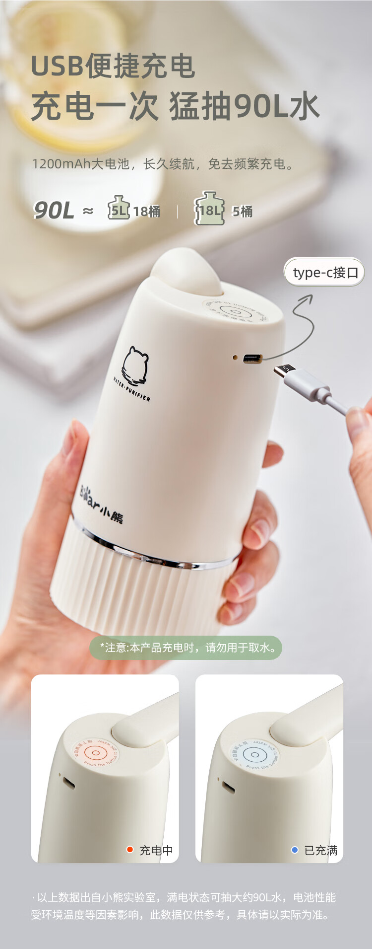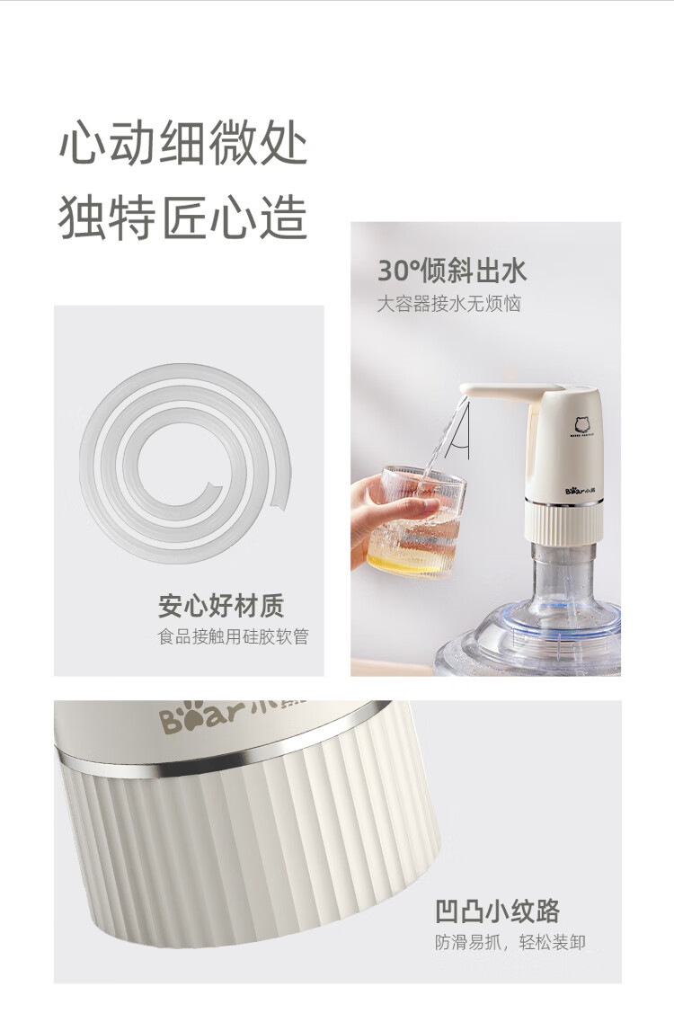 积分免费兑:小熊(Bear)桶装水抽水器 电动压水器 自动吸水器 矿泉水上水器 饮水机抽水神器抽水泵 YSJ-D06H5