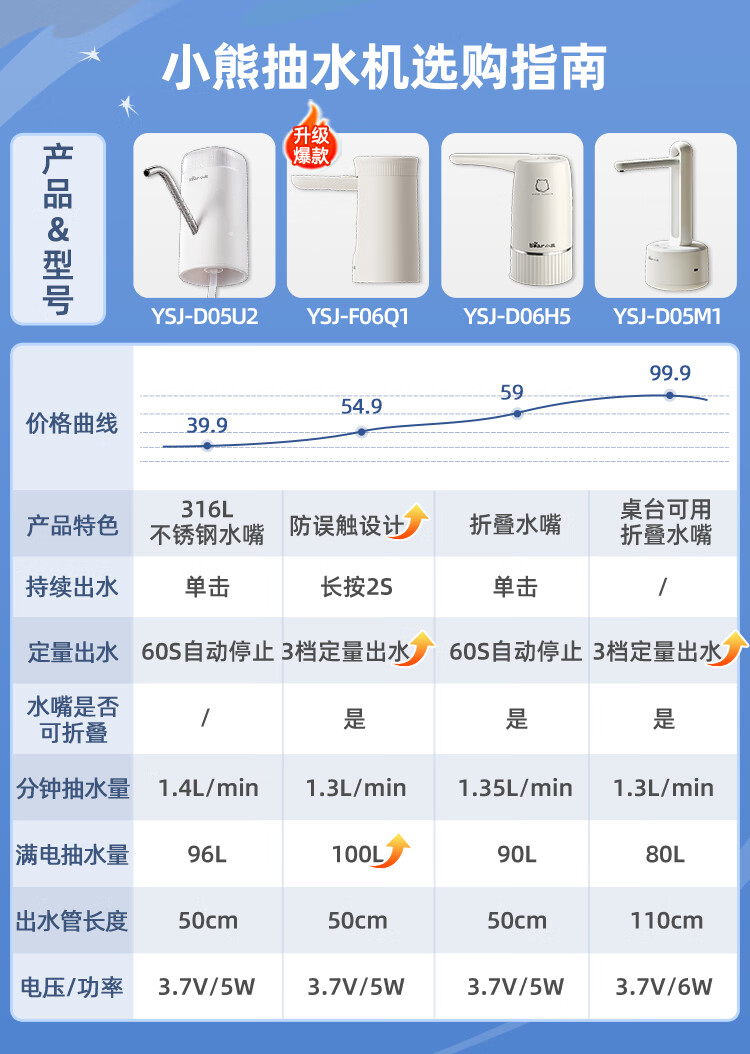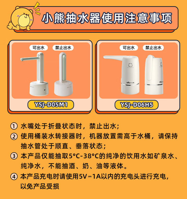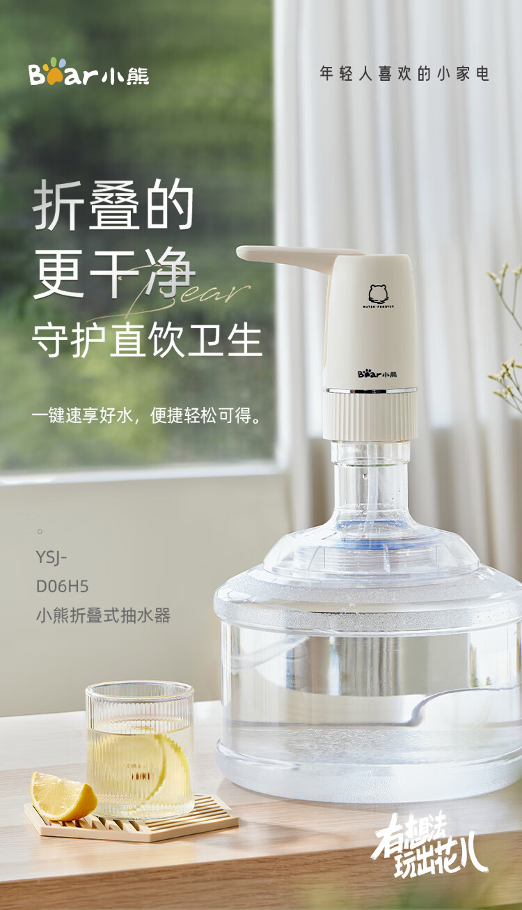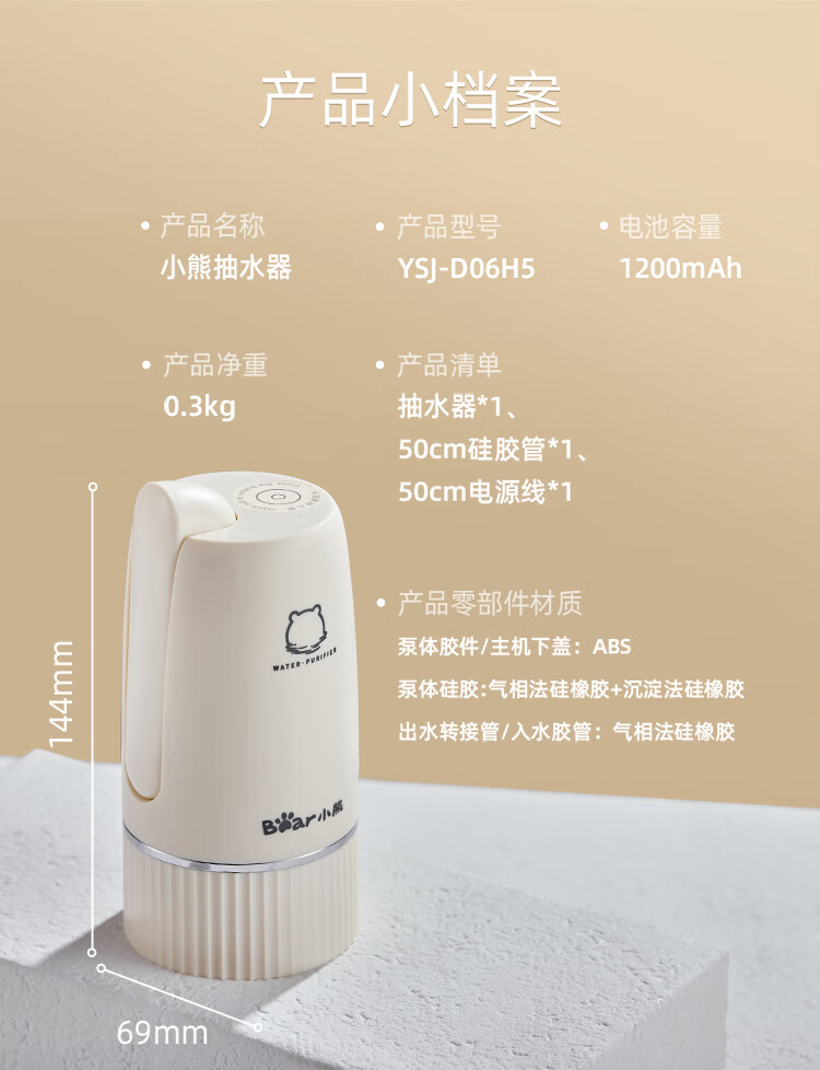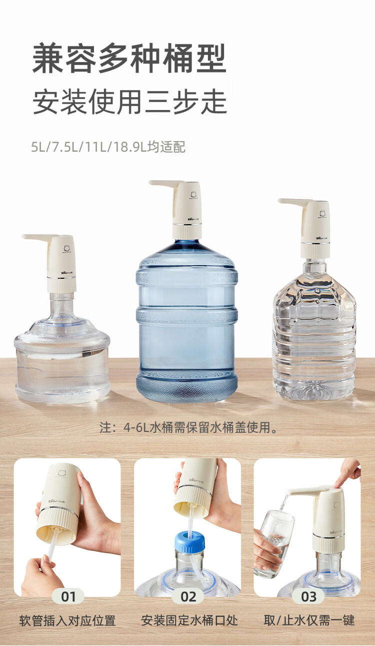 积分免费兑:小熊(Bear)桶装水抽水器 电动压水器 自动吸水器 矿泉水上水器 饮水机抽水神器抽水泵 YSJ-D06H5